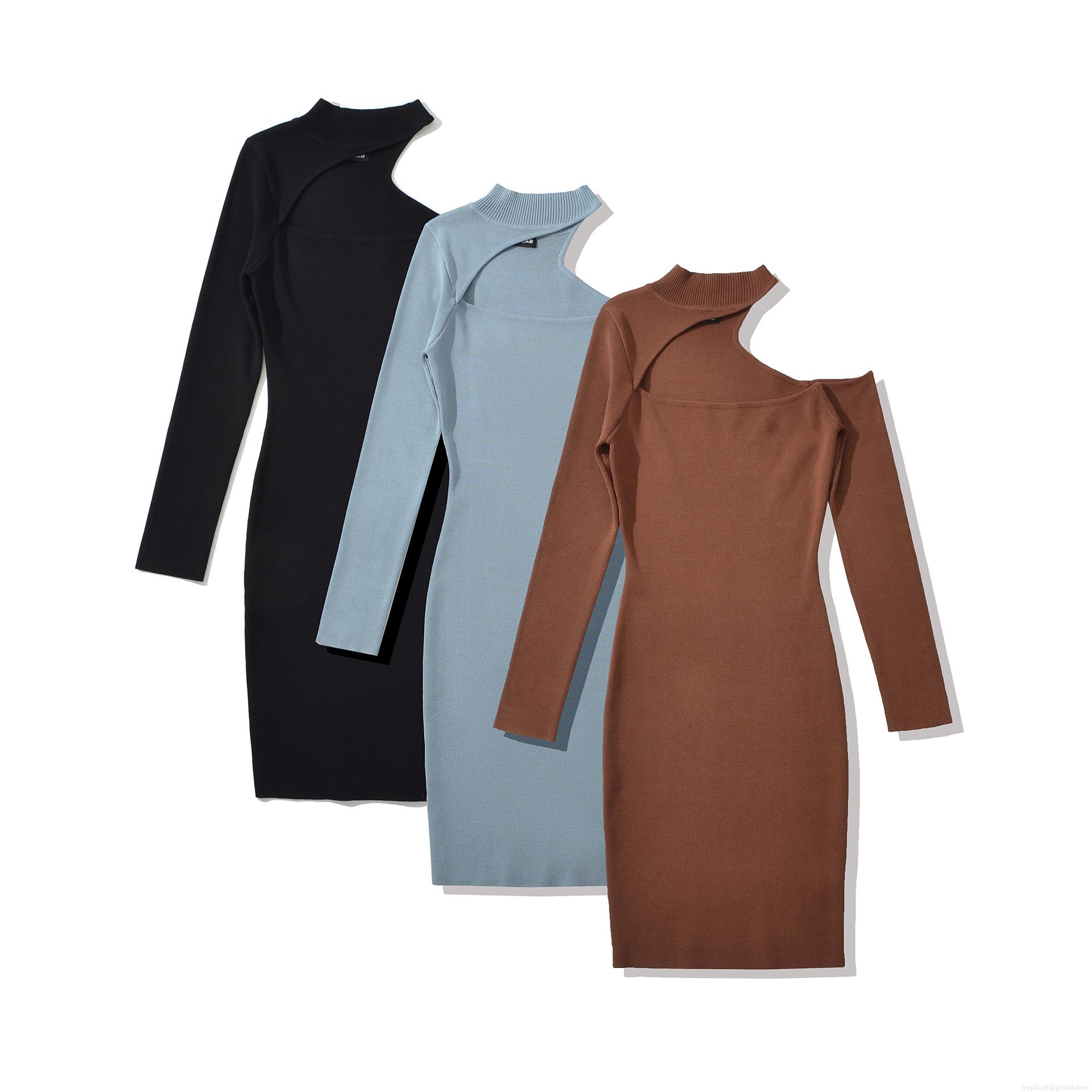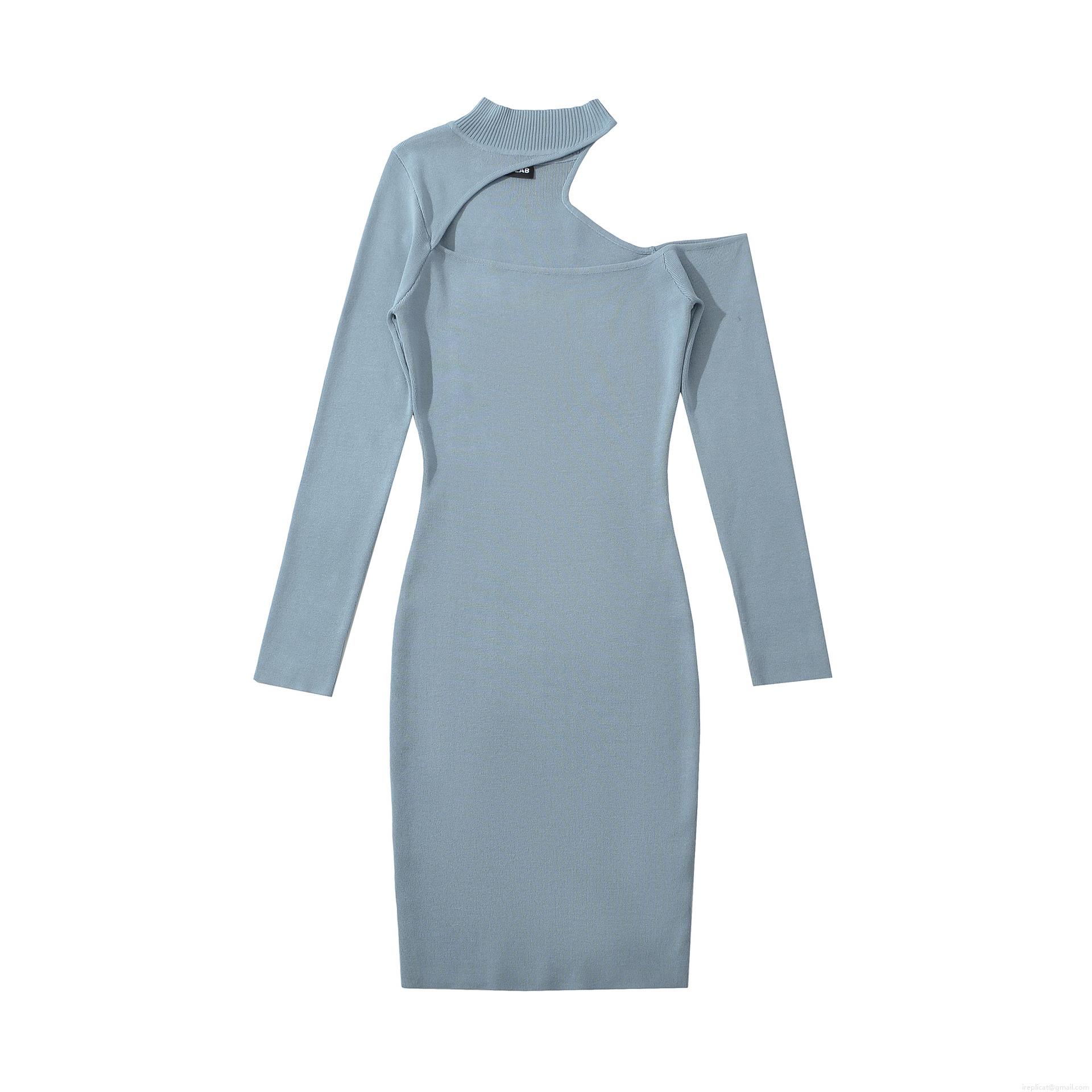 Women Sexy Hollow Out One Shoulder Ribbed Knit Midi Dress Long Sleeve Solid Color Slim Fit Bodycon Sweater Dress For Spring Autumn