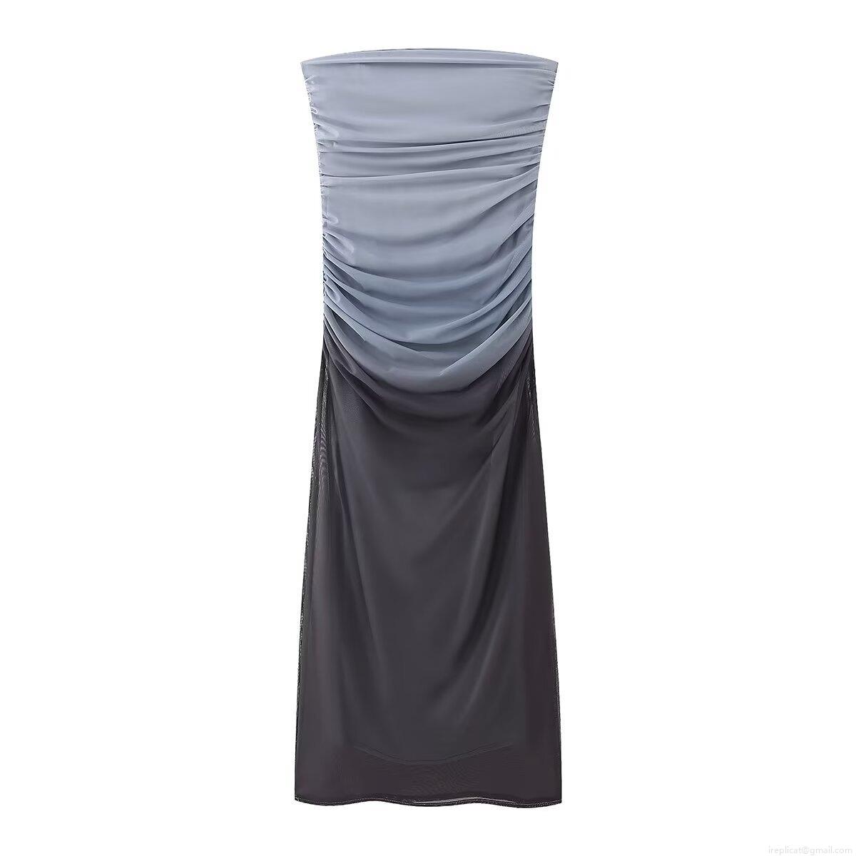 • Women Sexy Ruched Ombre Tube Top Midi Dress Strapless Mesh Bodycon Gradient Party Dress Sleeveless Clubwear For Ladies