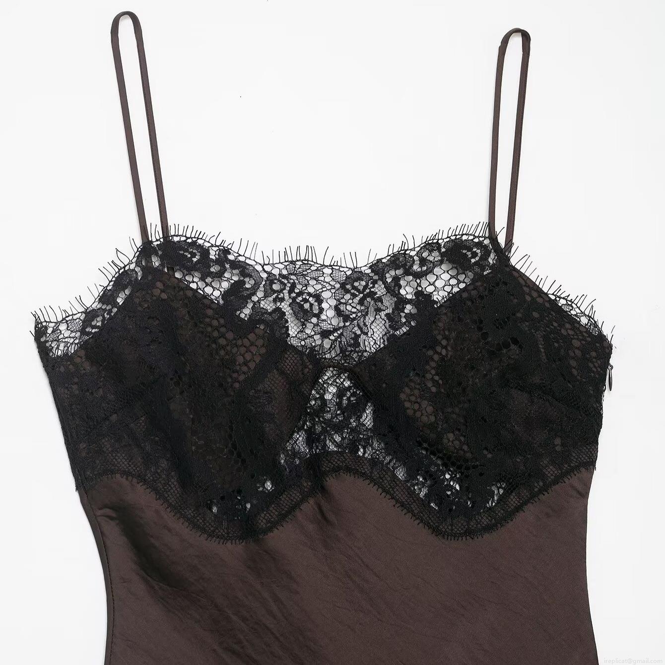• Women Sexy Satin Lace Patchwork Slip Dress Asymmetric Hem V-Neck Midi Cami Dress For Party Banquet Elegant Spaghetti Strap Night Out Dress
