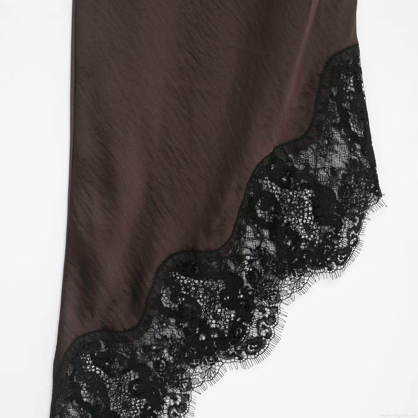 Solid Color, Lace Patchwork, Satin Finish, Asymmetrical Cut
