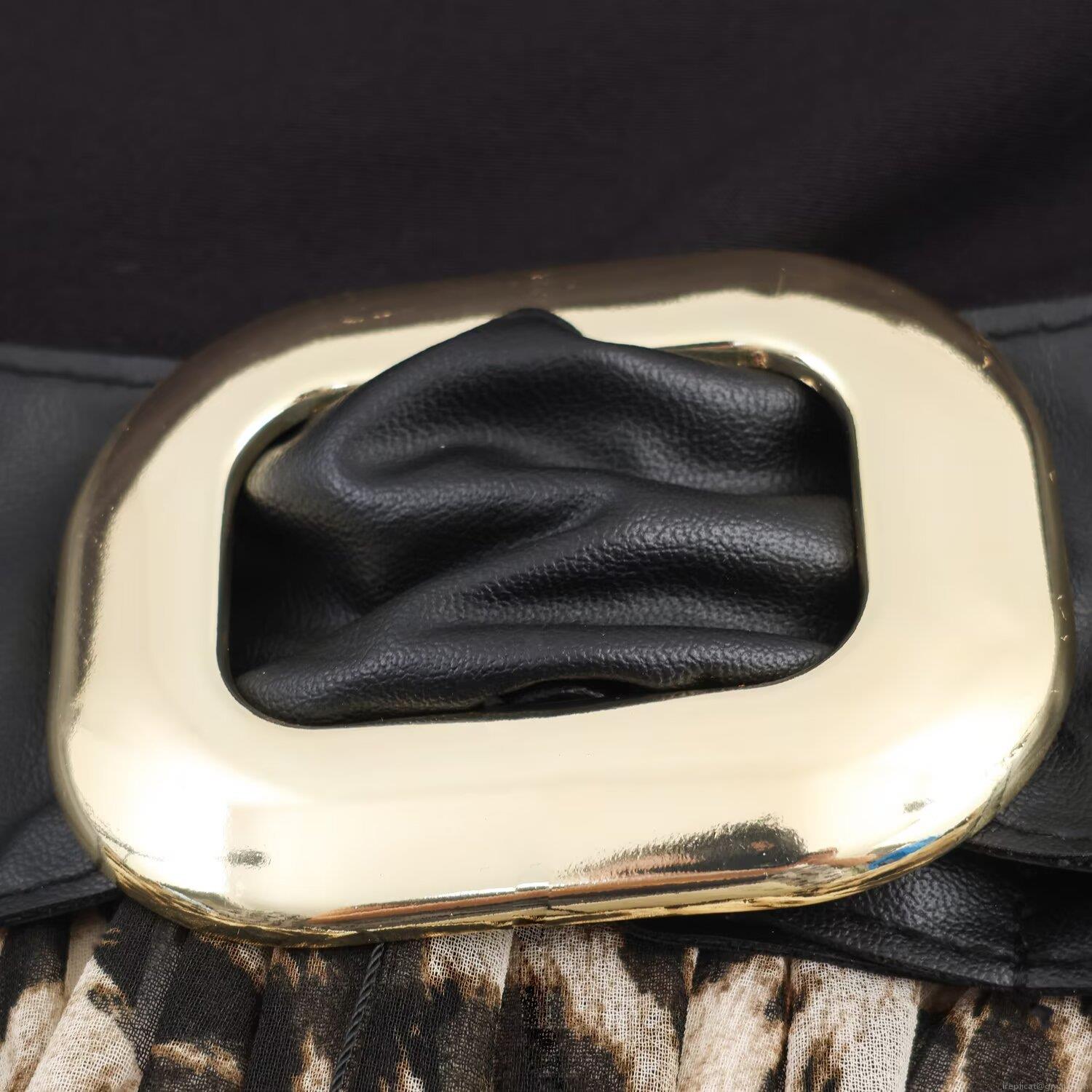 Splice, Leopard Print, Pleats, Color Blocking, Gold Buckle, Belt