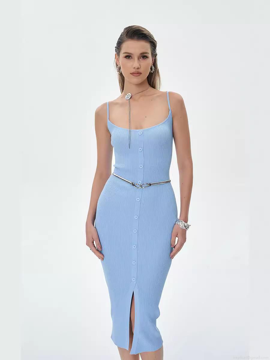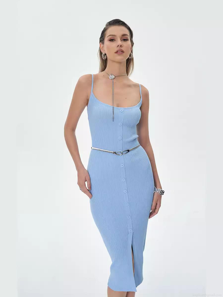 Solid Color, Single-breasted, Ribbed Strip, Thin Straps, Slit Design