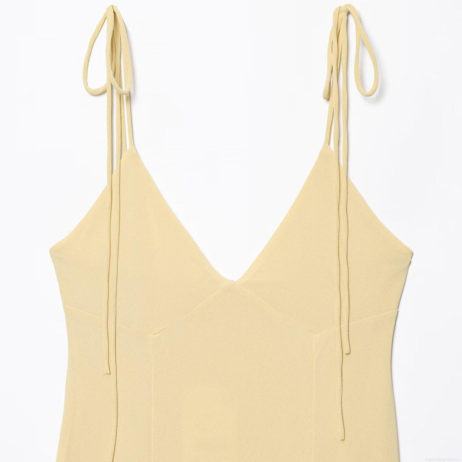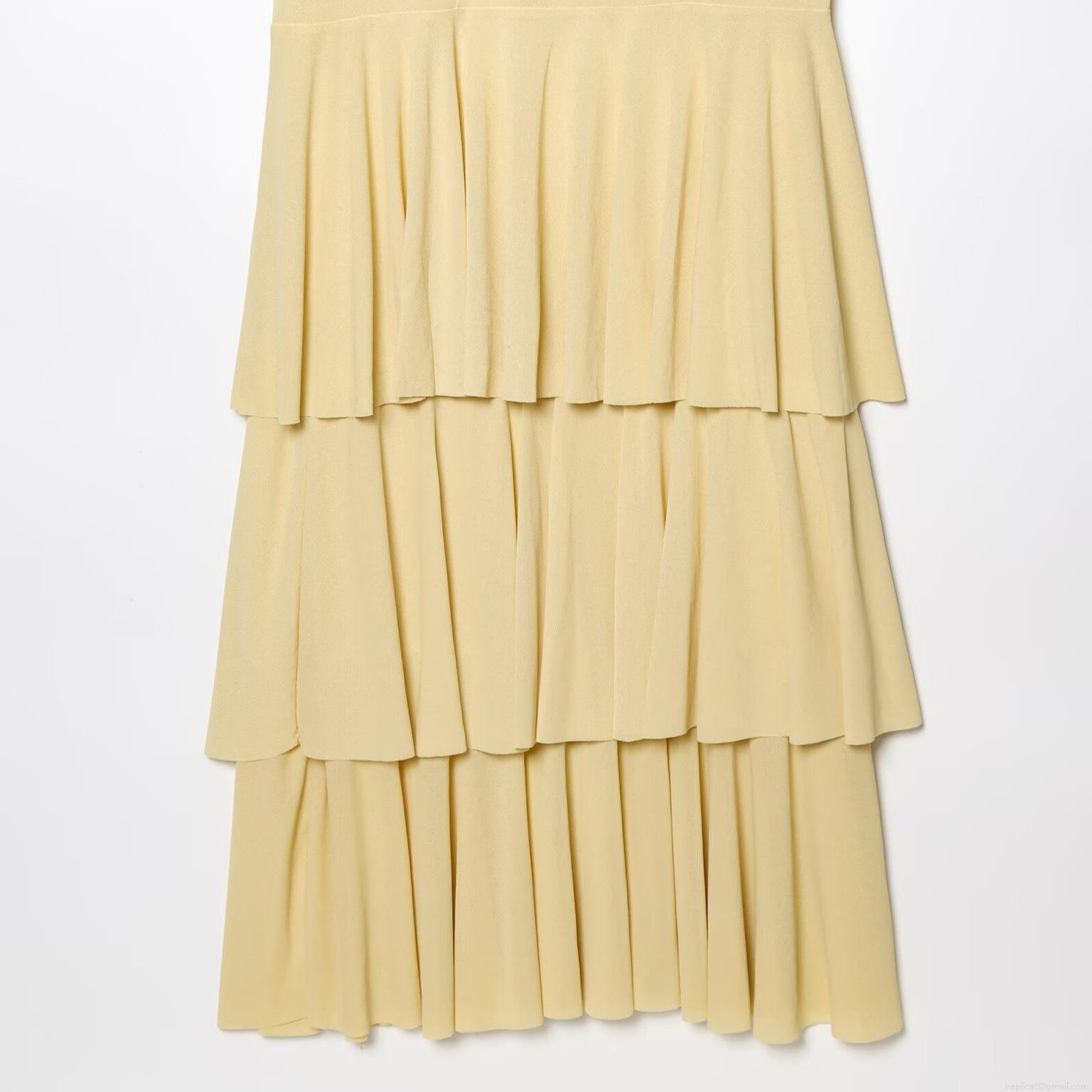 • Women Sexy V Neck Backless Layered Tiered Midi Dress Summer Cream Yellow Bow Tie Shoulder Straps Cake Dress For Vacation Party Casual Chic Polyester Spandex Blend