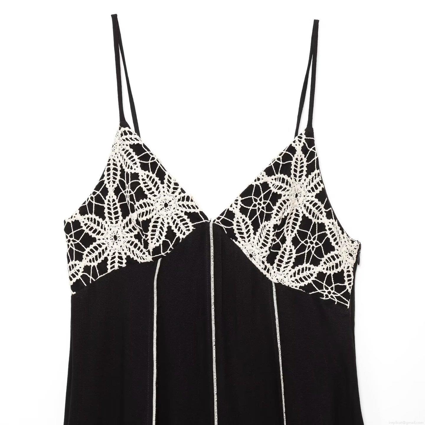 Women Sexy V-Neck Spaghetti Strap Midi Dress Summer Lace Trim Patchwork Contrast Stitching Slim Fit Spandex Blend Long Evening Party Dress