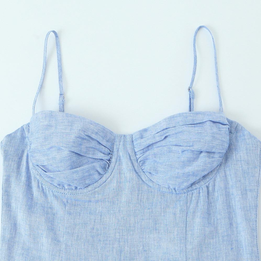 • Women Sky Blue Camisole Dress Sexy Ruched Heart Neckline High Split Long Dress Elegant Slim Fit Sleeveless Summer Midi Dress For Party Vacation