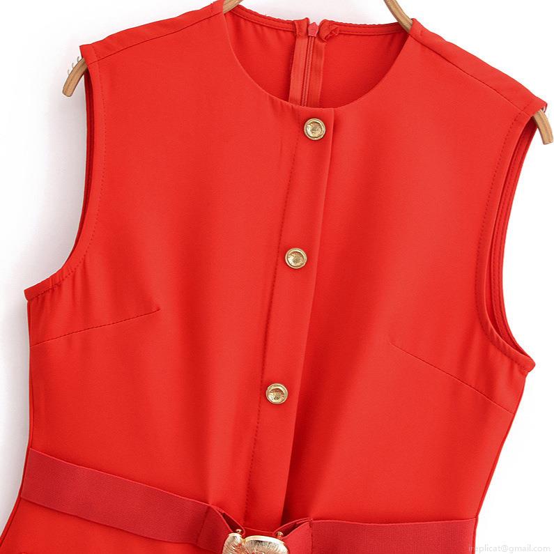 • Women Sleeveless Midi Dress Elegant Gold Button Polyester Spandex Textured Dress With Belt For Office Daily Casual Commute Bodycon Sexy Split Hem Summer Outfit