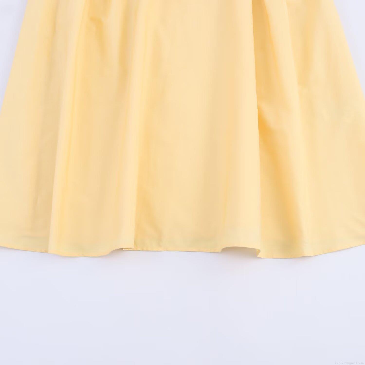 • Women Sleeveless V Neck Button Down Pleated Midi Dress With Belt Solid Color Pale Yellow Poplin Polyester Elegant Casual Party Summer Autumn Dress