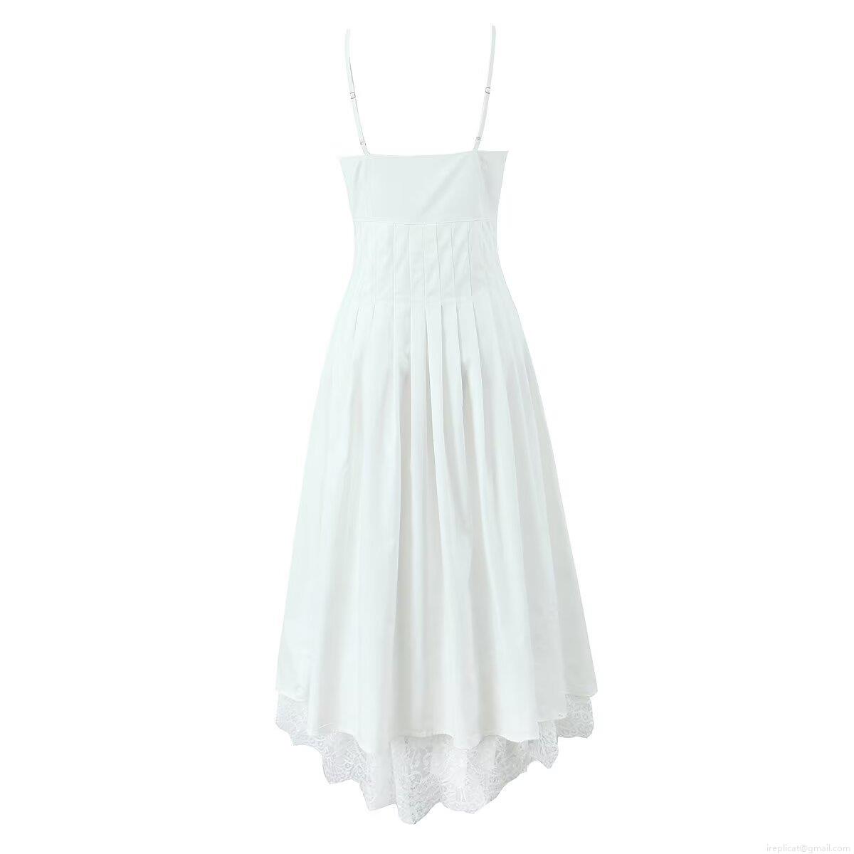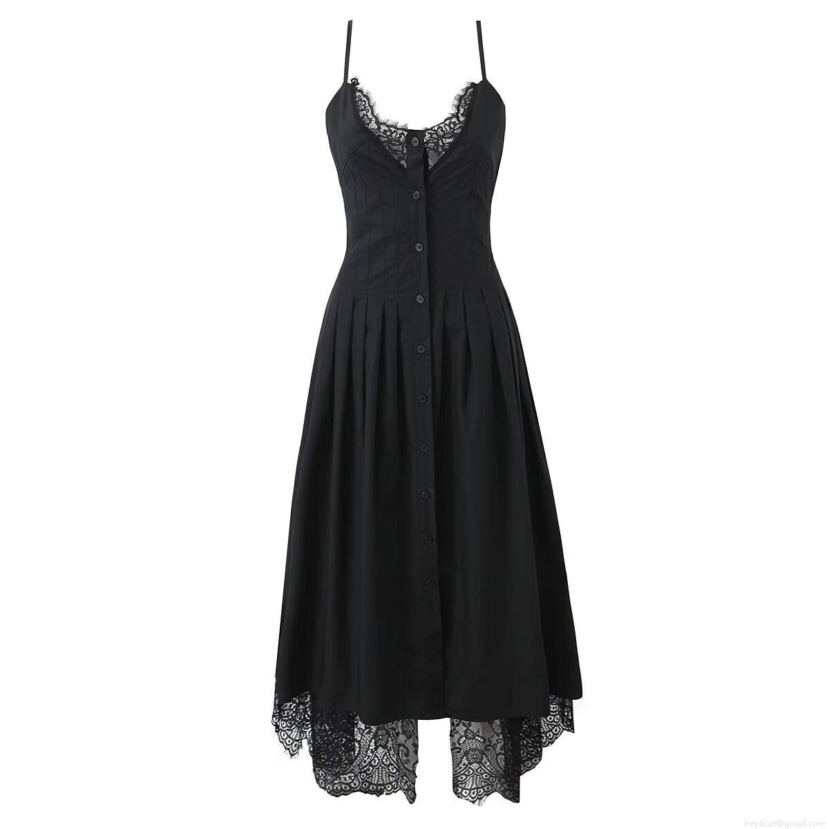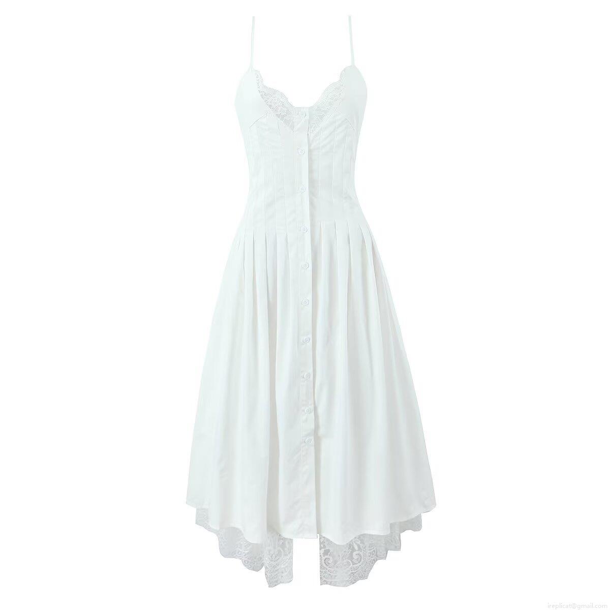 • Women Splicing Lace Slip Dress 100% Cotton V-Neck Single-Breasted Midi A-Line Dress Sleeveless Summer Casual Streetwear Party Dress For Ladies