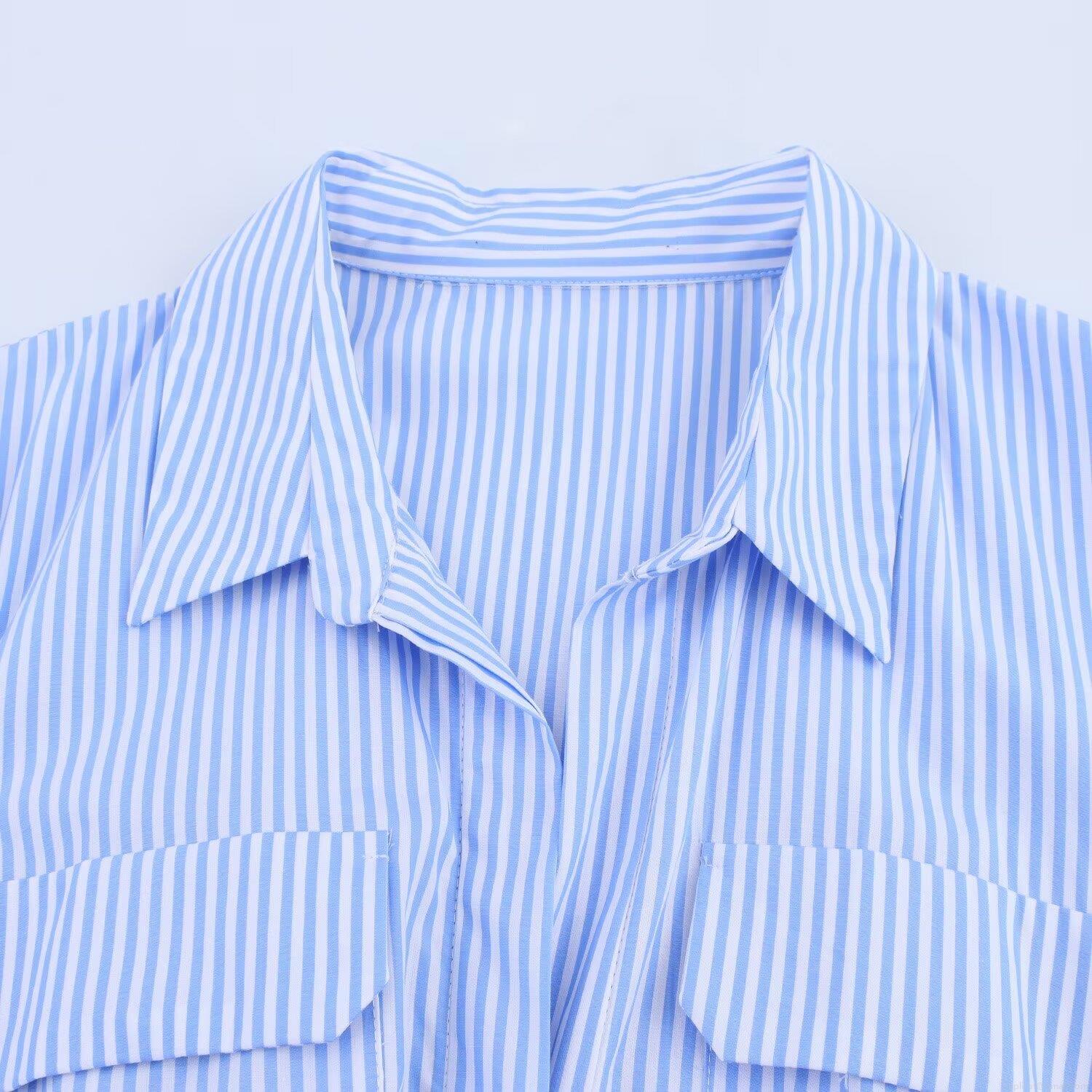 • Women Striped Shirt Dress Polyester Short Sleeve Tie Waist Button Down Midi Long Dresses Summer Casual Streetwear Office Wear For Lady