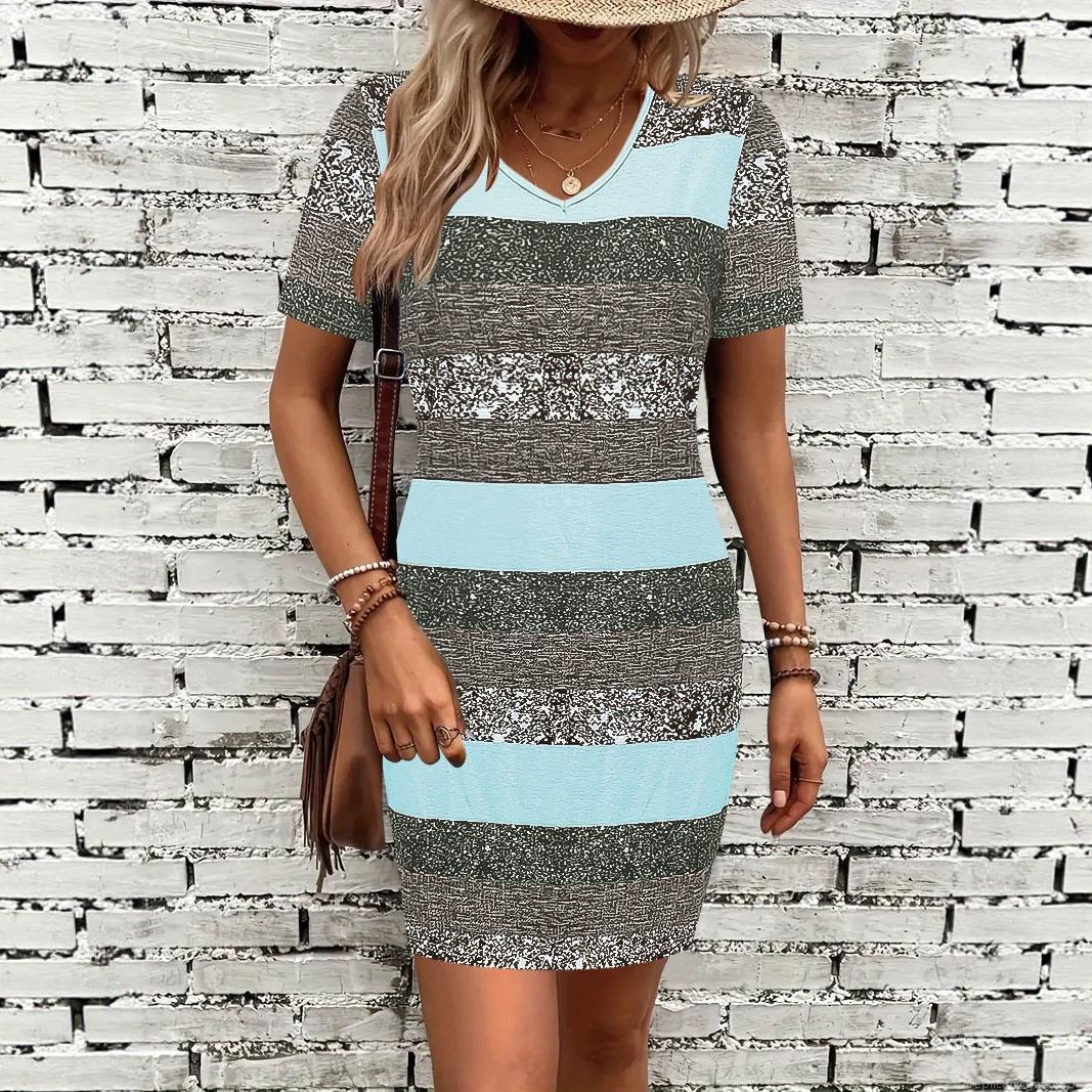 • Women Striped Short Sleeve V-Neck Dress Polyester Spandex Blend Casual Summer A-Line Midi Dress Plus Size Loose Fit Streetwear For Ladies Daily Wear Soft Comfortable Fashion Printed Dress