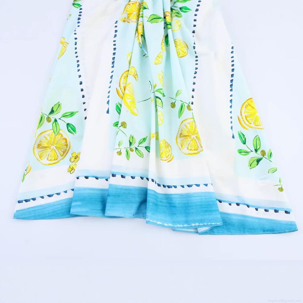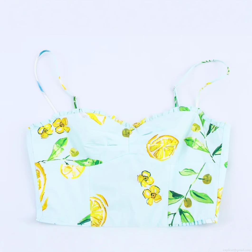 • Women Summer Lemon Print Dress Spaghetti Strap Back Bow Tie A-Line High Waist Swing Midi Dress For Vacation Holiday Party Elegant Lady Beachwear