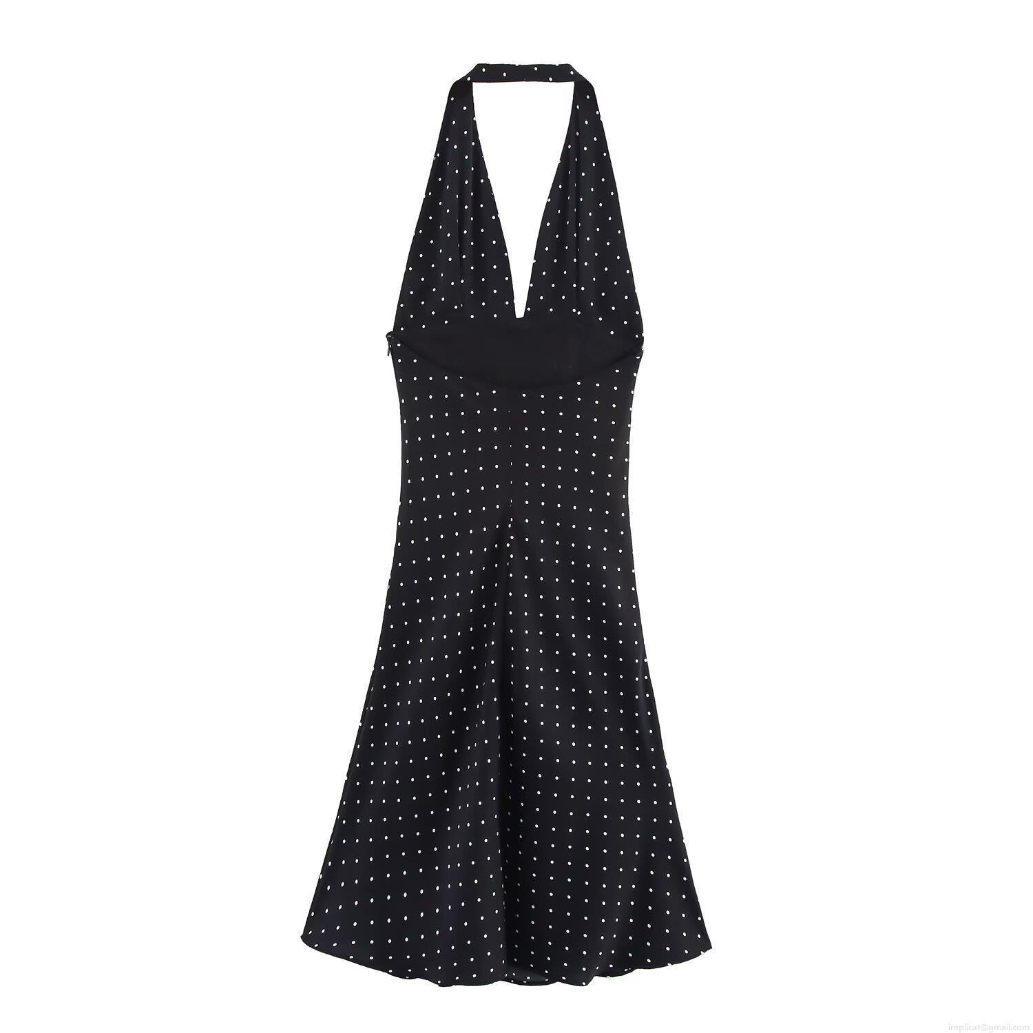 Polka Dots, Zipper, Neckband, V-neck, Backless