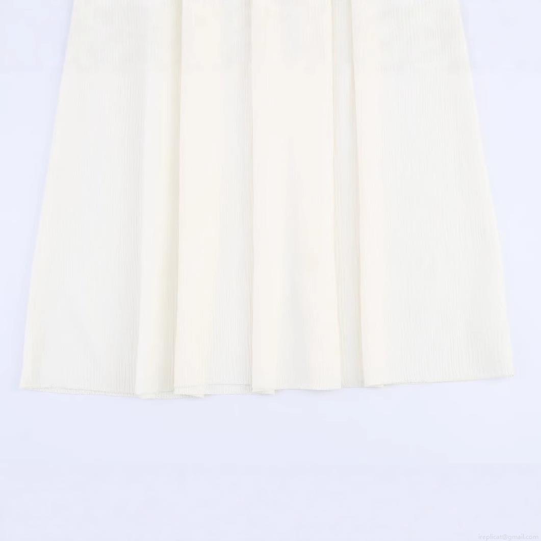 • Women Summer White Sleeveless Hollow Out Embroidery Crochet Patchwork Midi Dress Elegant Round Neck Pleated Patchwork A-Line Dress For Vacation Beach Party