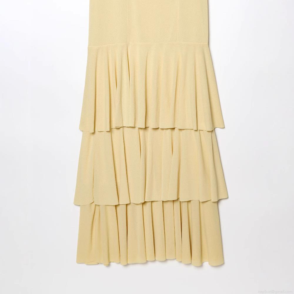 Solid Color, Backless, Strapless Shoulder Strap, Layered Folds, Three-tiered Cake Skirt