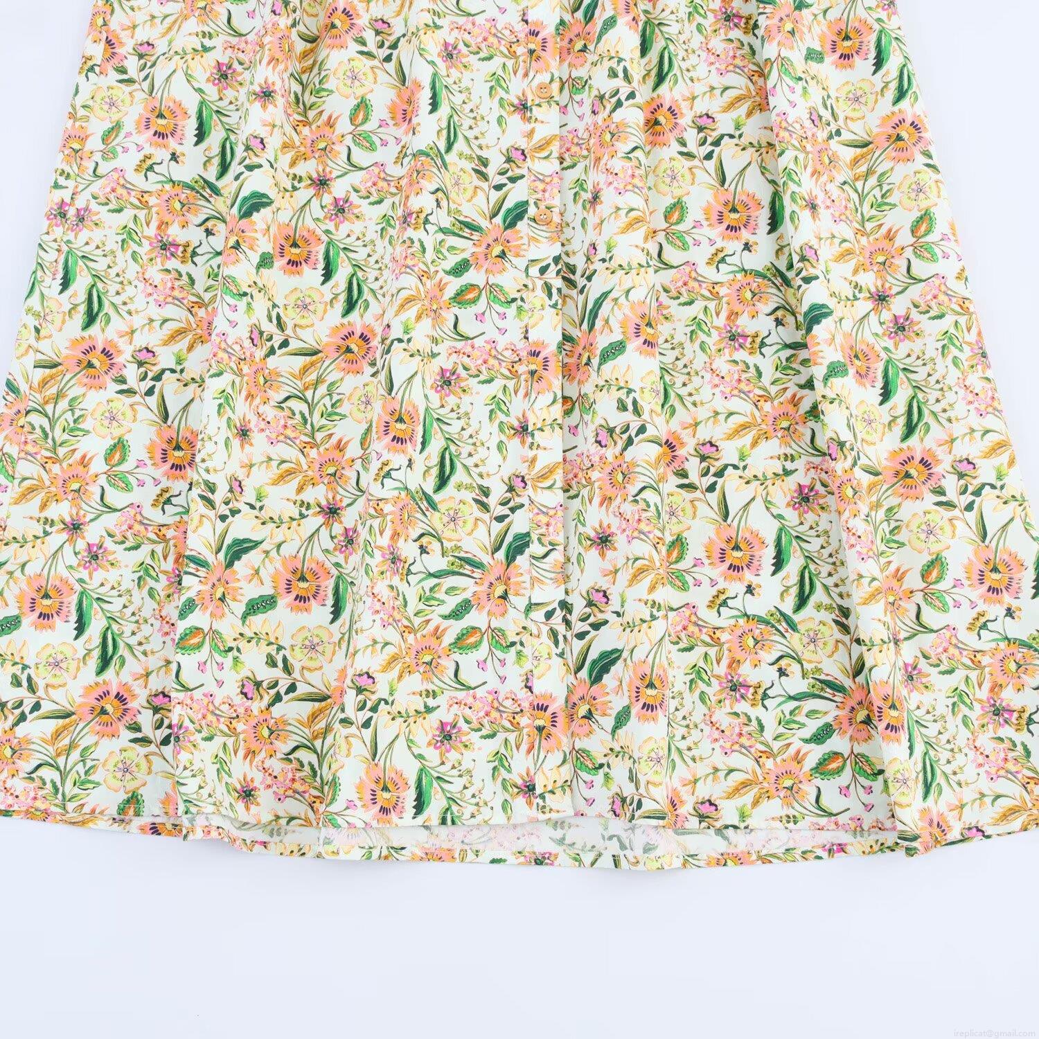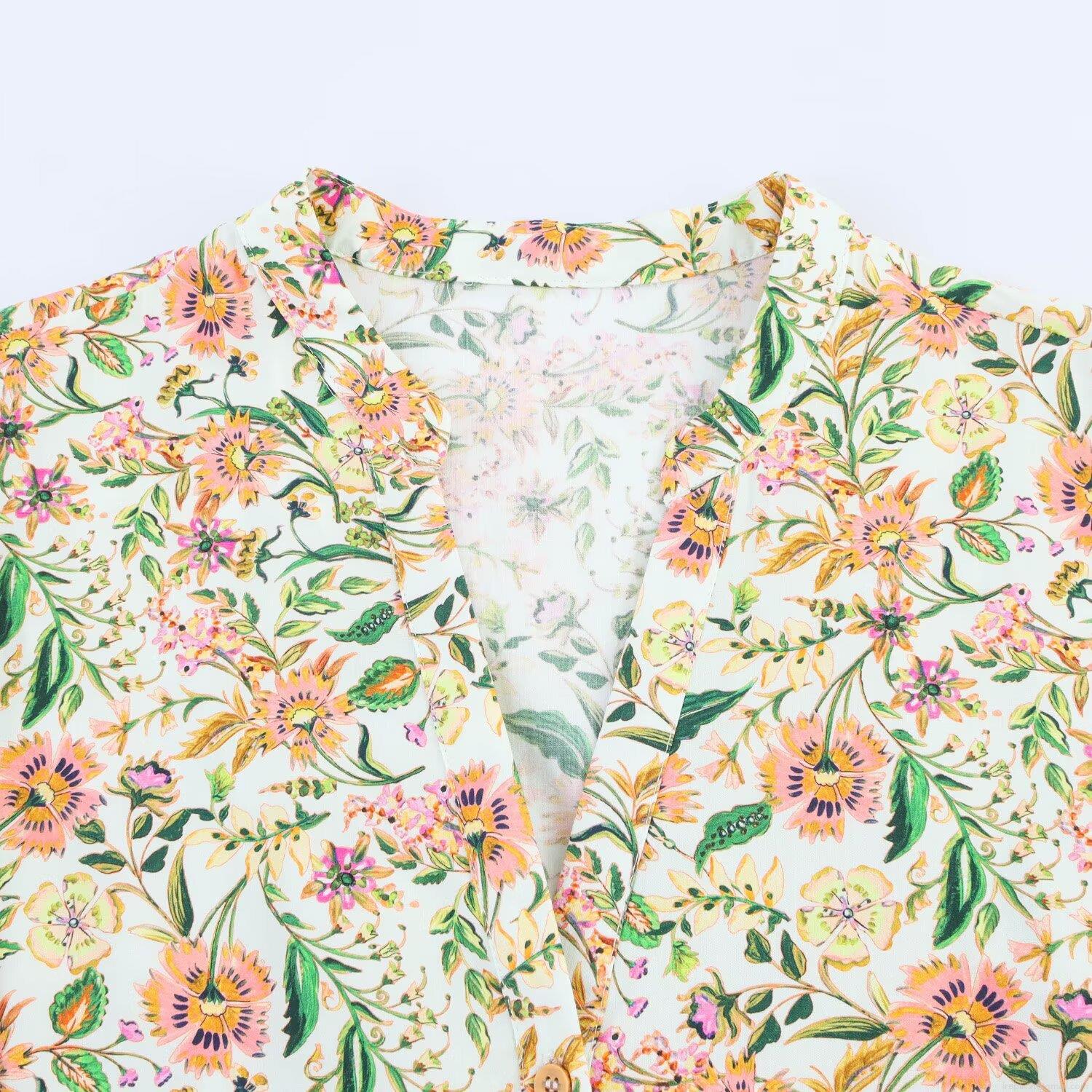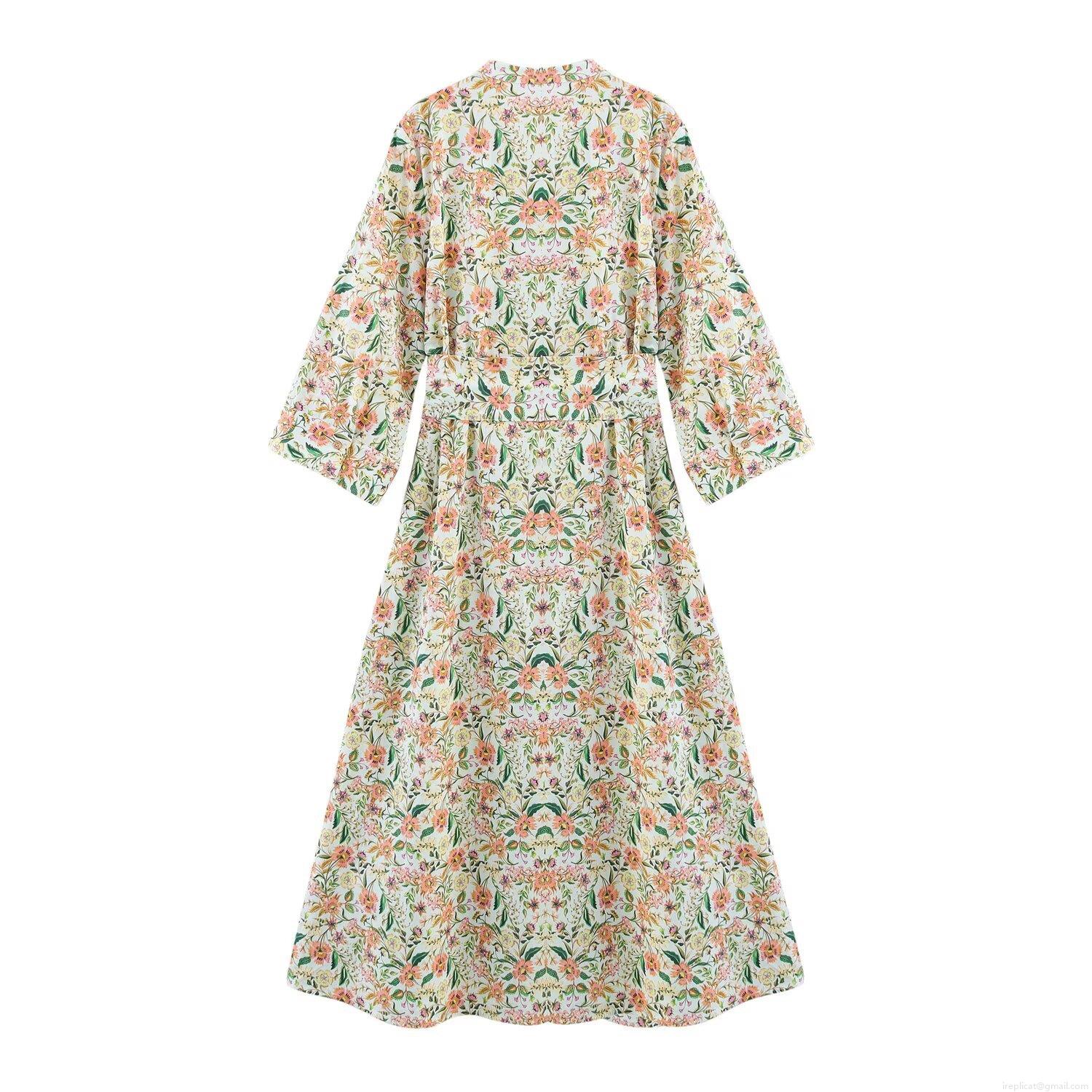 Floral Pattern, Plants And Flowers, Waist shaping, Printing, V-neck, Woven Belt