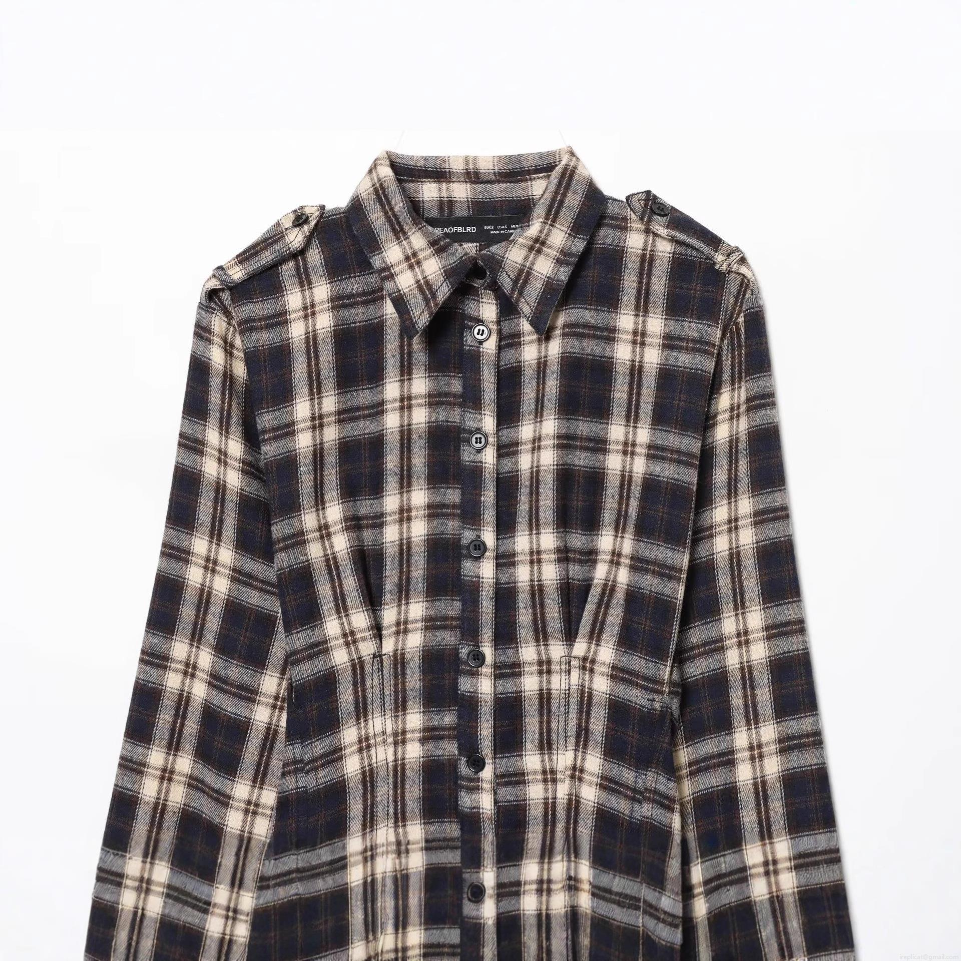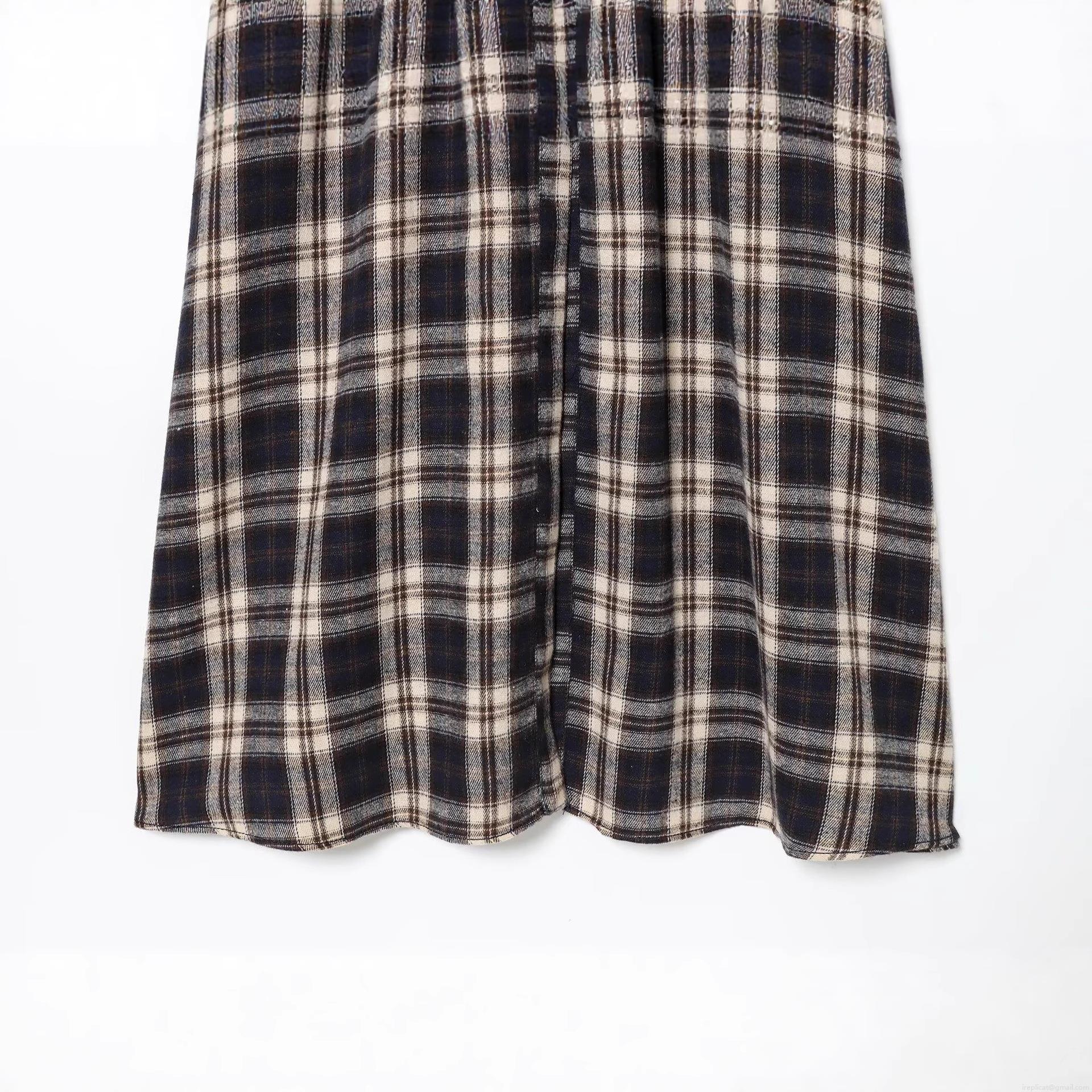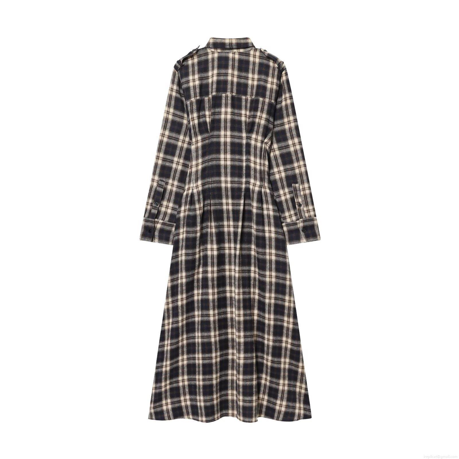 • Women Vintage Plaid Long Sleeve Midi Shirt Dress Elegant Brushed Fabric Fold Waist Button Up Lapel Socialite Dress For Autumn Winter