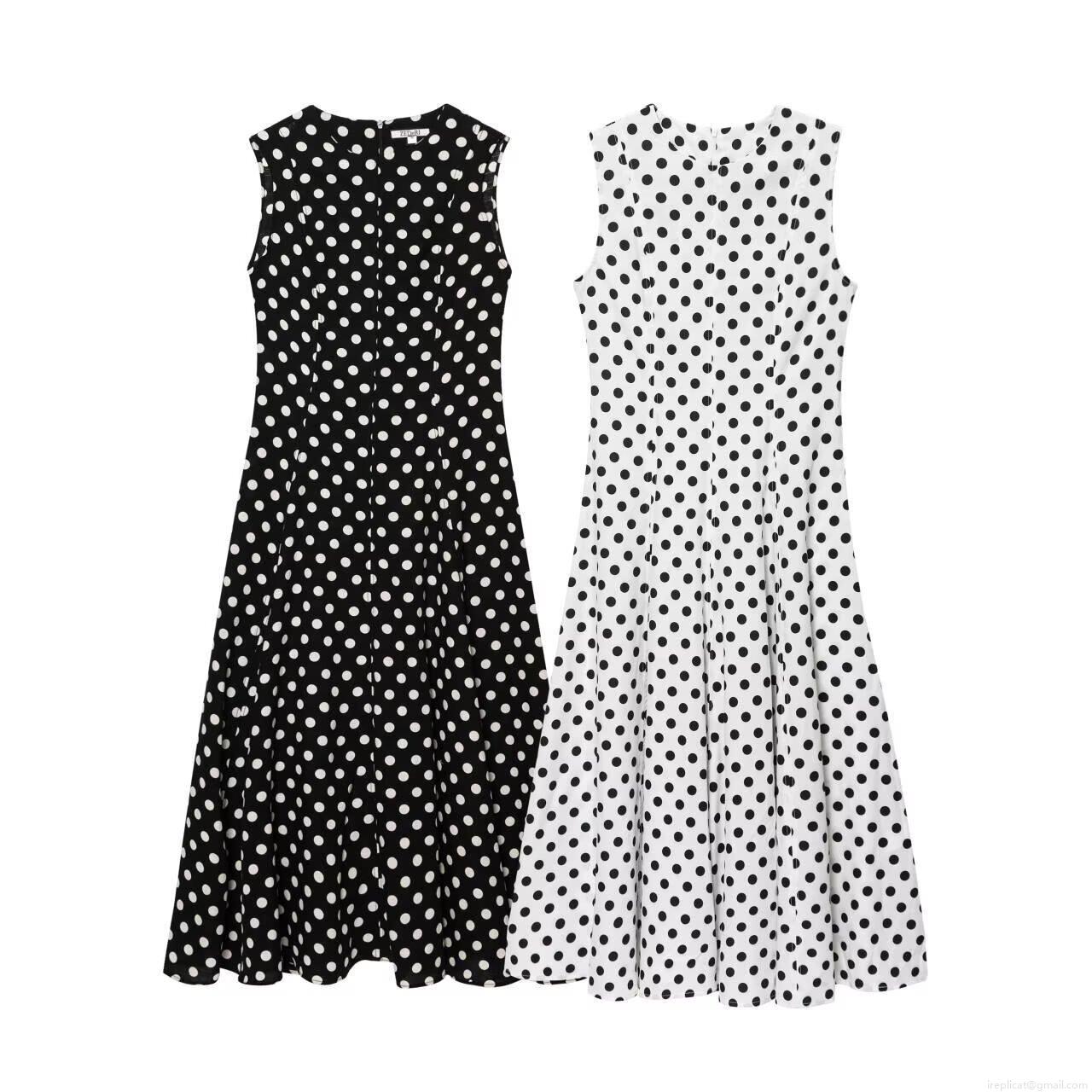 • Women Vintage Polka Dot Sleeveless A-Line Midi Dress Retro Round Neck High Waist High Quality Polyester Elegant Party Sun Dress for Women Ladies