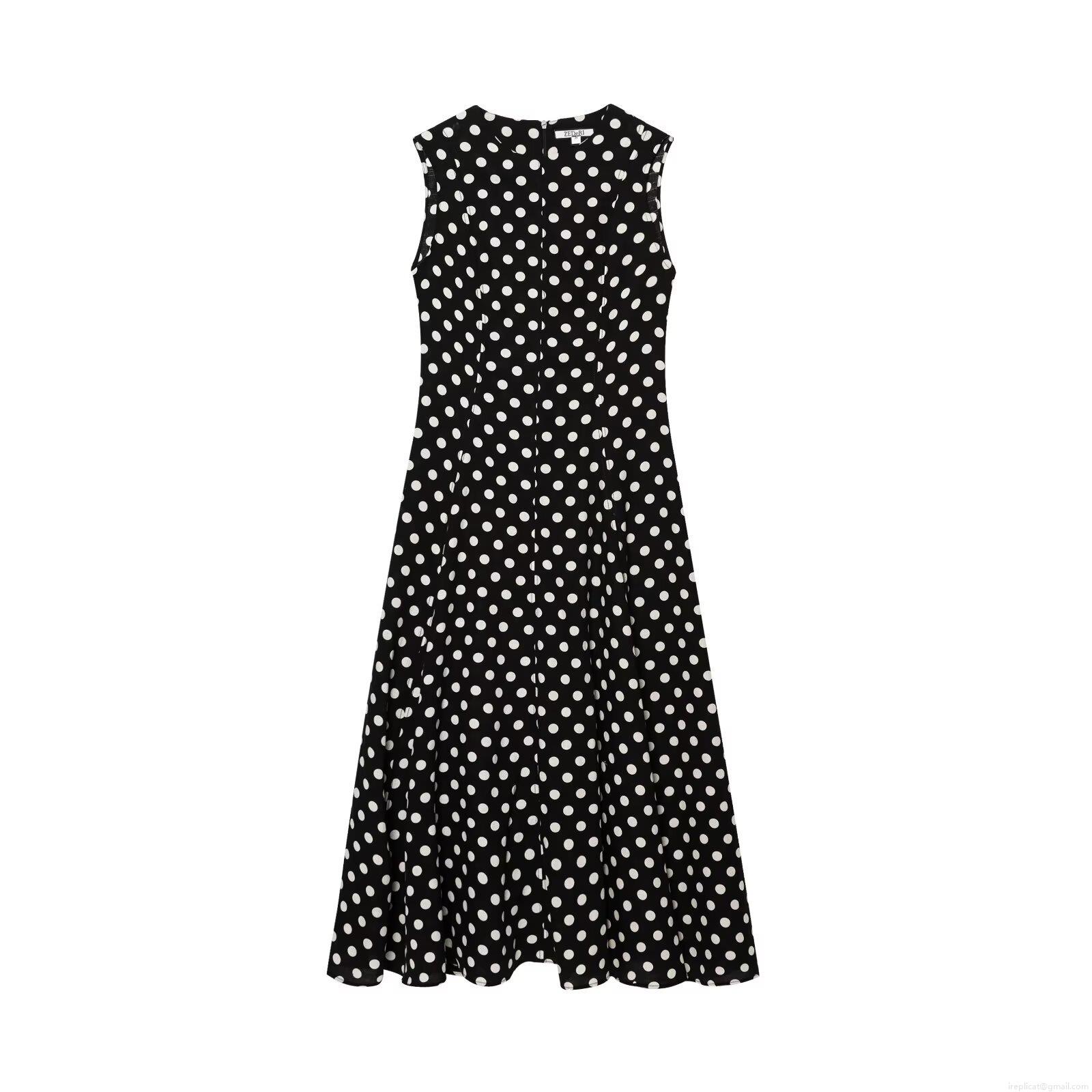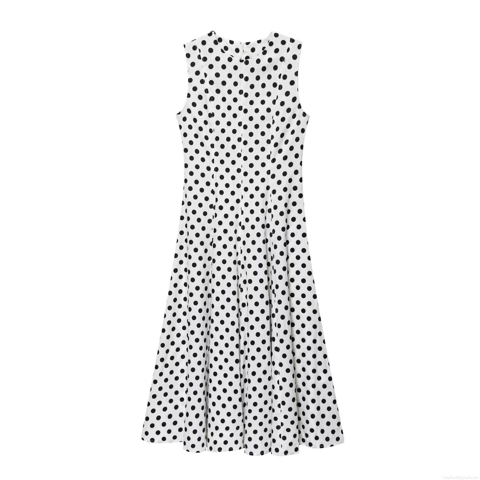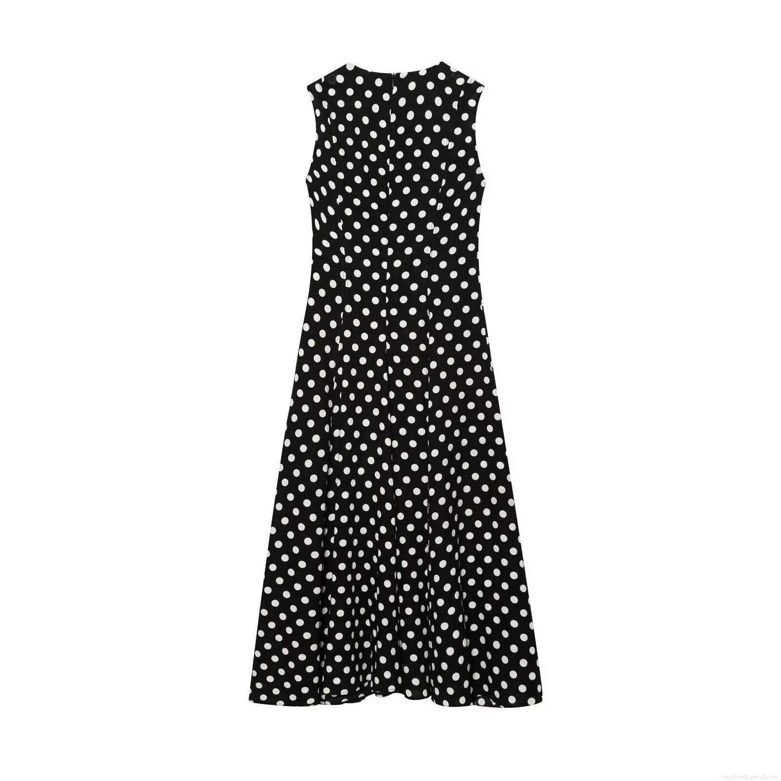 Women Vintage Polka Dot Sleeveless A-Line Midi Dress Retro Round Neck High Waist High Quality Polyester Elegant Party Sun Dress for Women Ladies