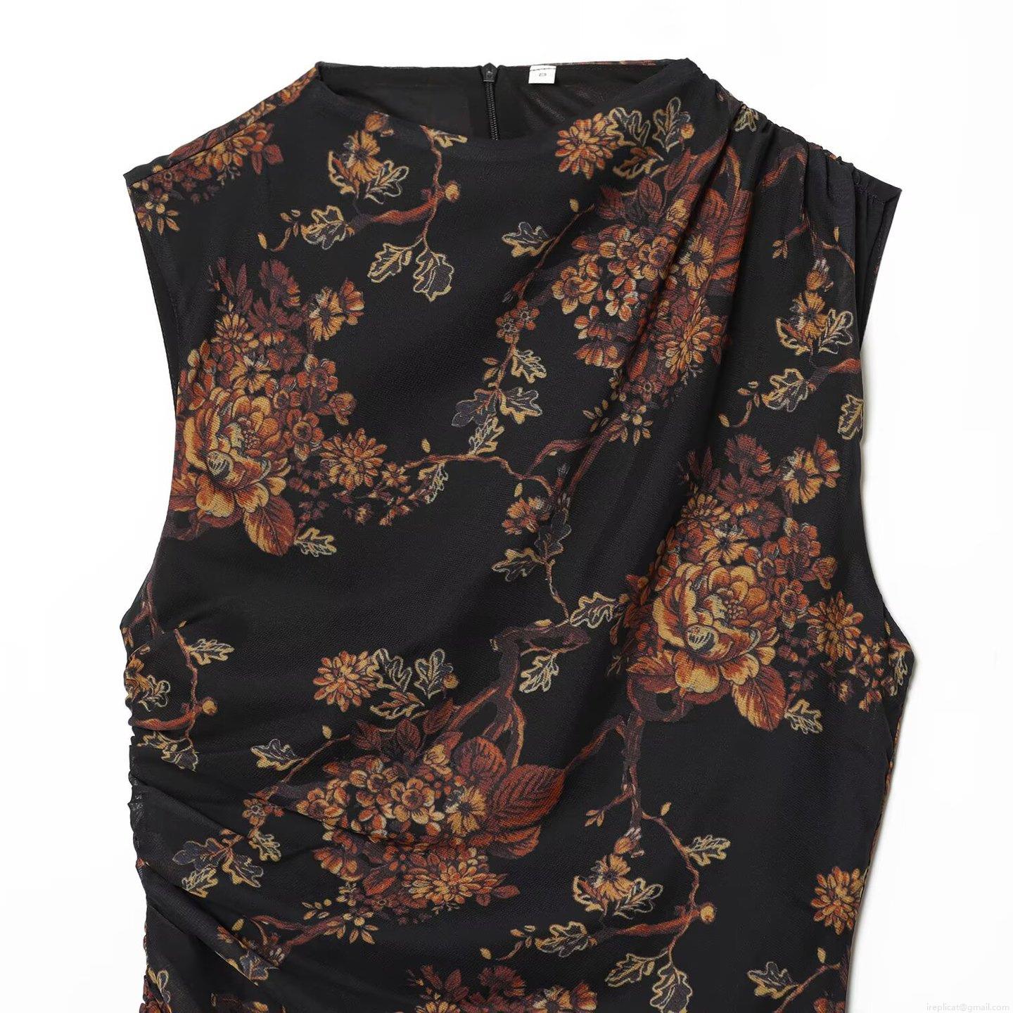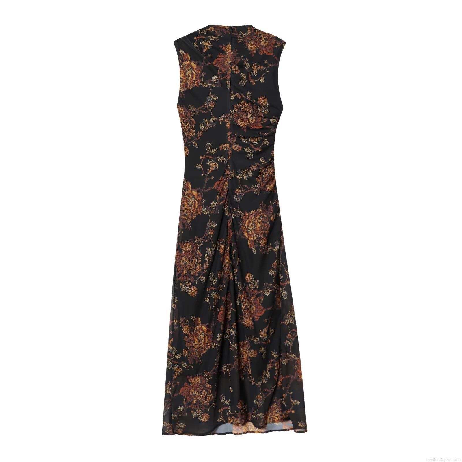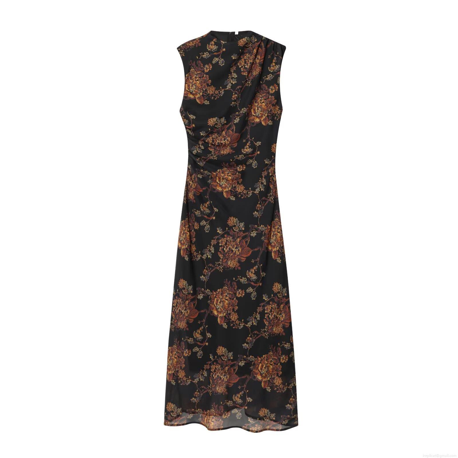Women Vintage Sleeveless Floral Print Midi Dress Elegant Slim Fit Chiffon Qipao Style Bodycon Dress For Daily Party Women Clothing