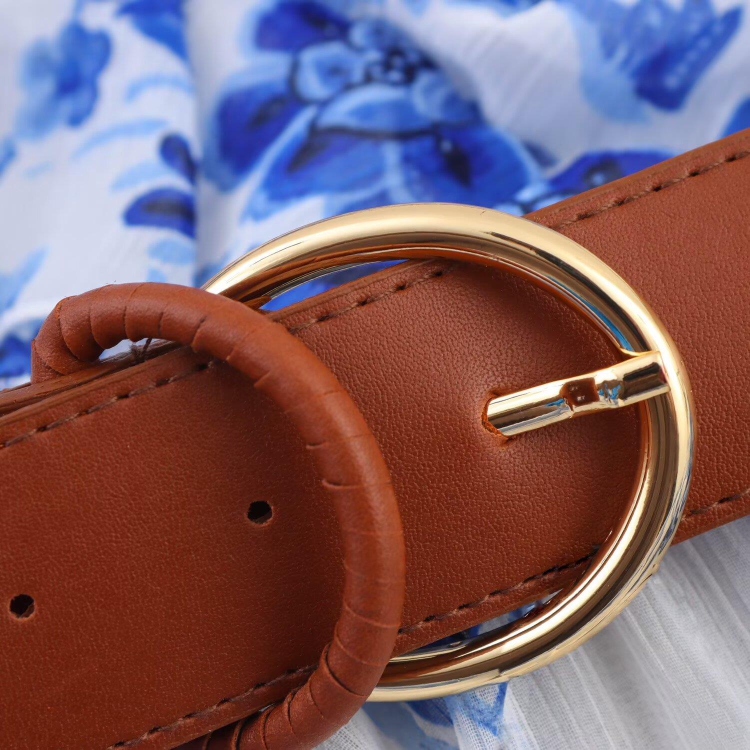 Women V-Neck Floral Print Midi Dress With Belt Long Lantern Sleeve Chiffon Ruffle Tiered Skirt Bohemian Summer Vacation Party Casual Dress