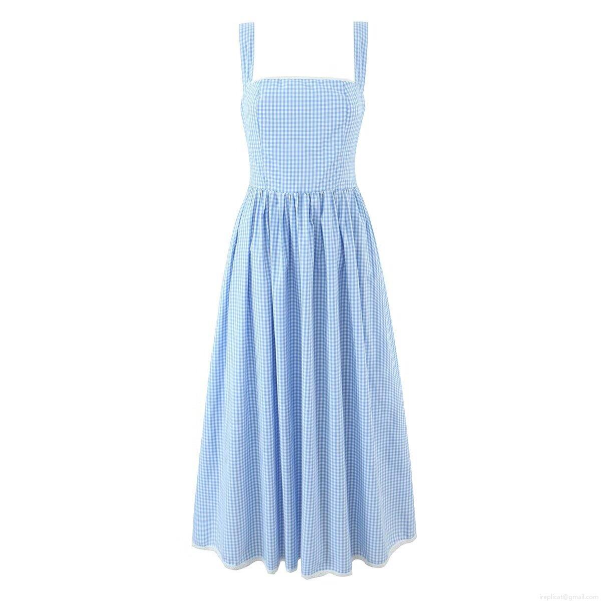 • Women's 100% Cotton Polka Dot Gingham Spaghetti Strap Dress Sexy Backless Lace-up Midi Sun Dress Slim Fit A-Line Party Dress With Lace Trim For Summer Vacation