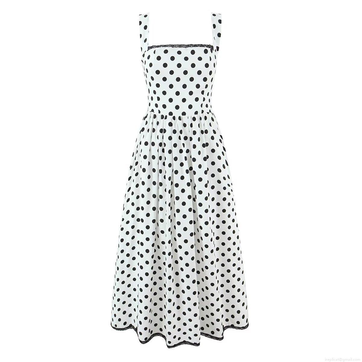 Polka Dots, Checkered Pattern, Pleats, Straps, Lace Trim, Backless, A-shaped Arrangement