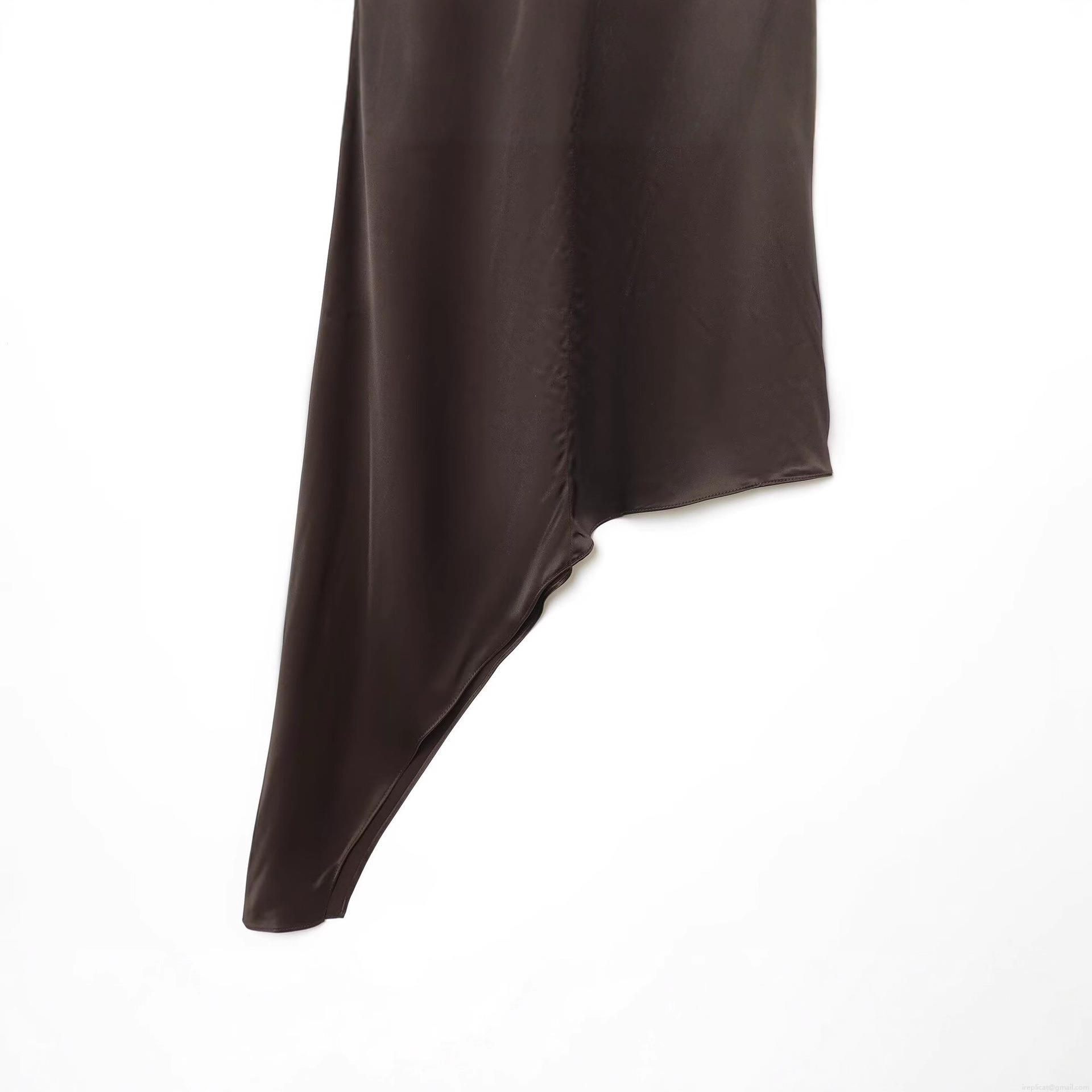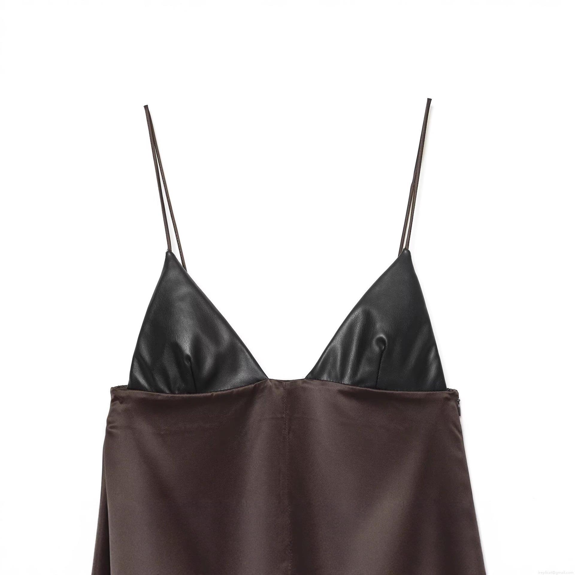 • Women's Asymmetrical Spaghetti Strap Midi Dress Sexy V-Neck Patchwork PU Leather Satin Slip Dress For Party Club Night Out Women Summer Dress