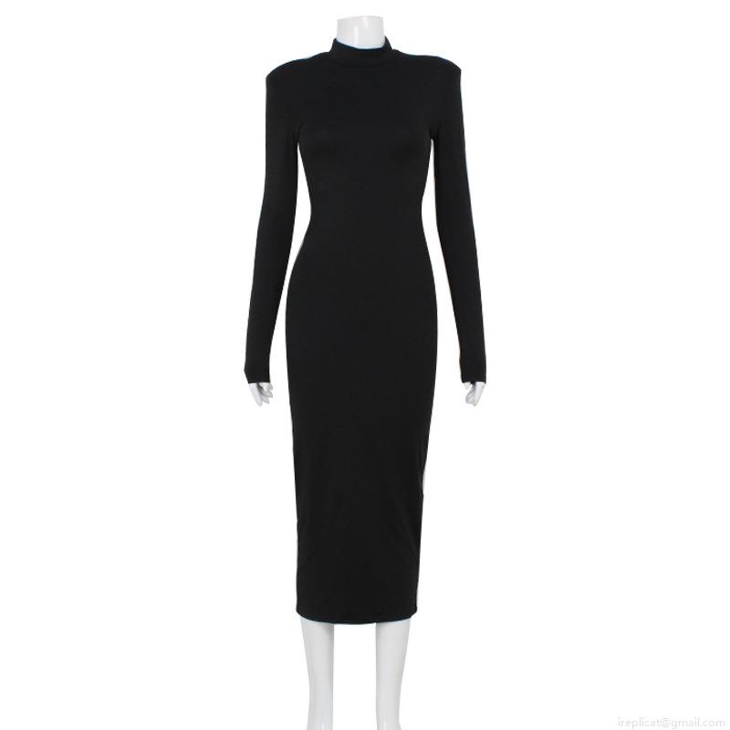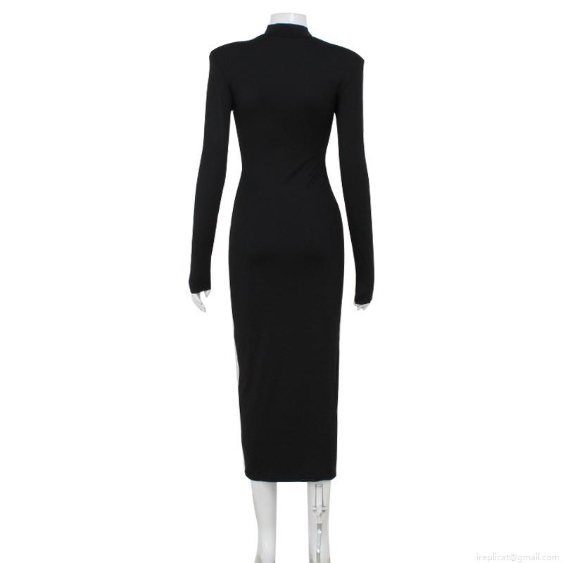 Women's Autumn High Neck Long Sleeve Bodycon Dress Solid Color Slim Fit Maxi Pencil Dress Office Lady Elegant Party Long Dress