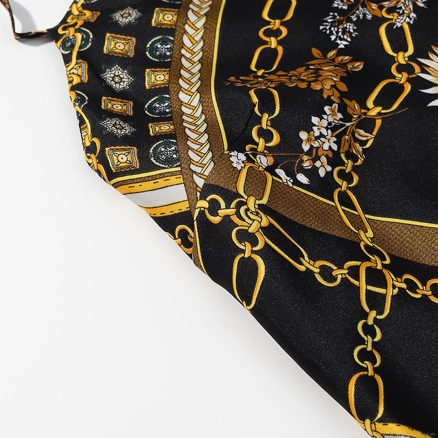 • Women's Baroque Chain Floral Print Satin Cami Midi Dress Sexy Sleeveless Drawstring Ruched Slim Fit Elegant Party Clubwear Dress