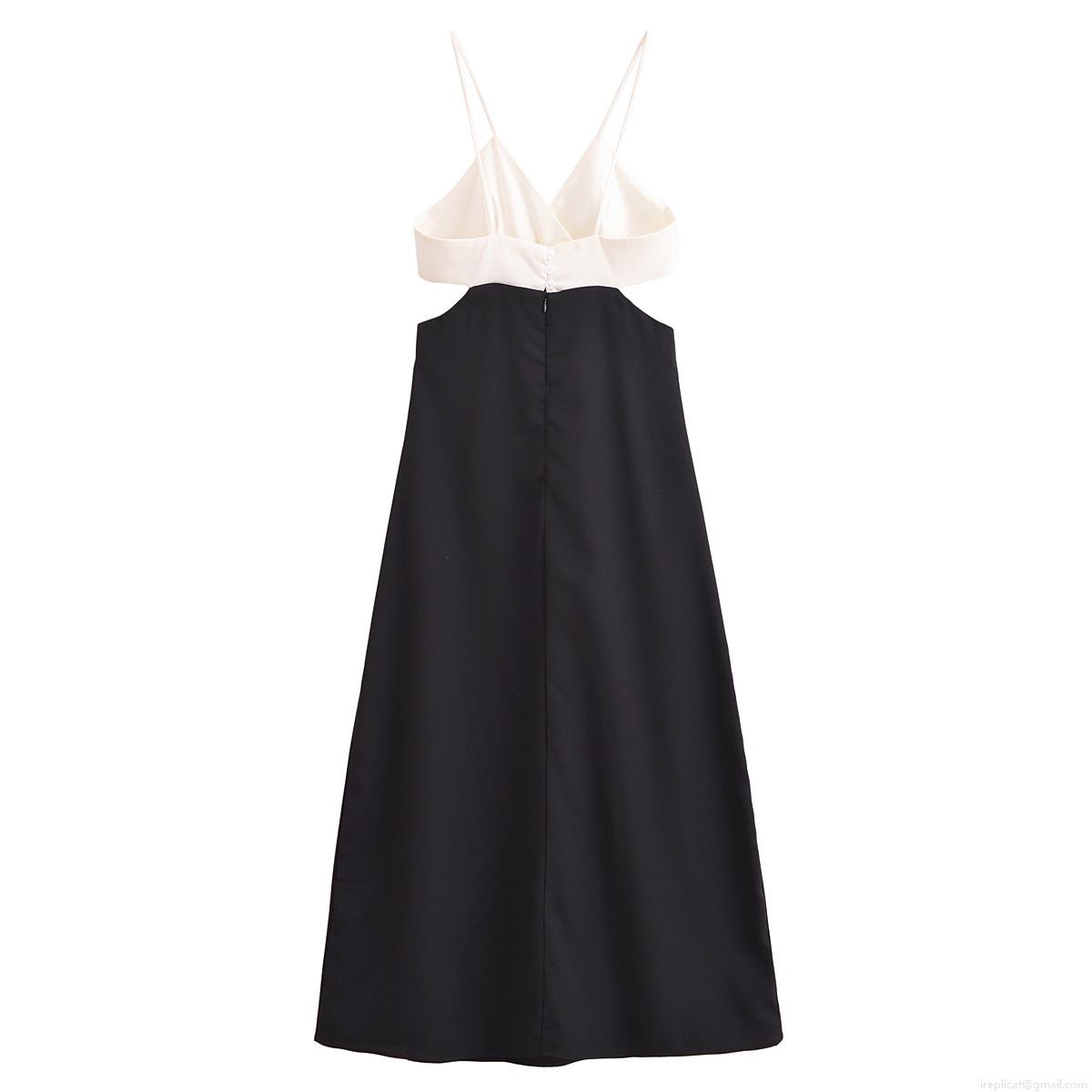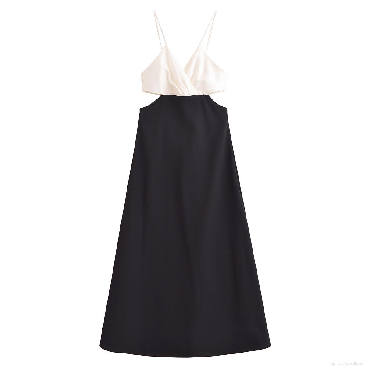 • Women's Black and White Color Block Midi Dress Elegant Cut Out Waist V Neck Sleeveless Satin Polyester Evening Party Socialite Sling Dress