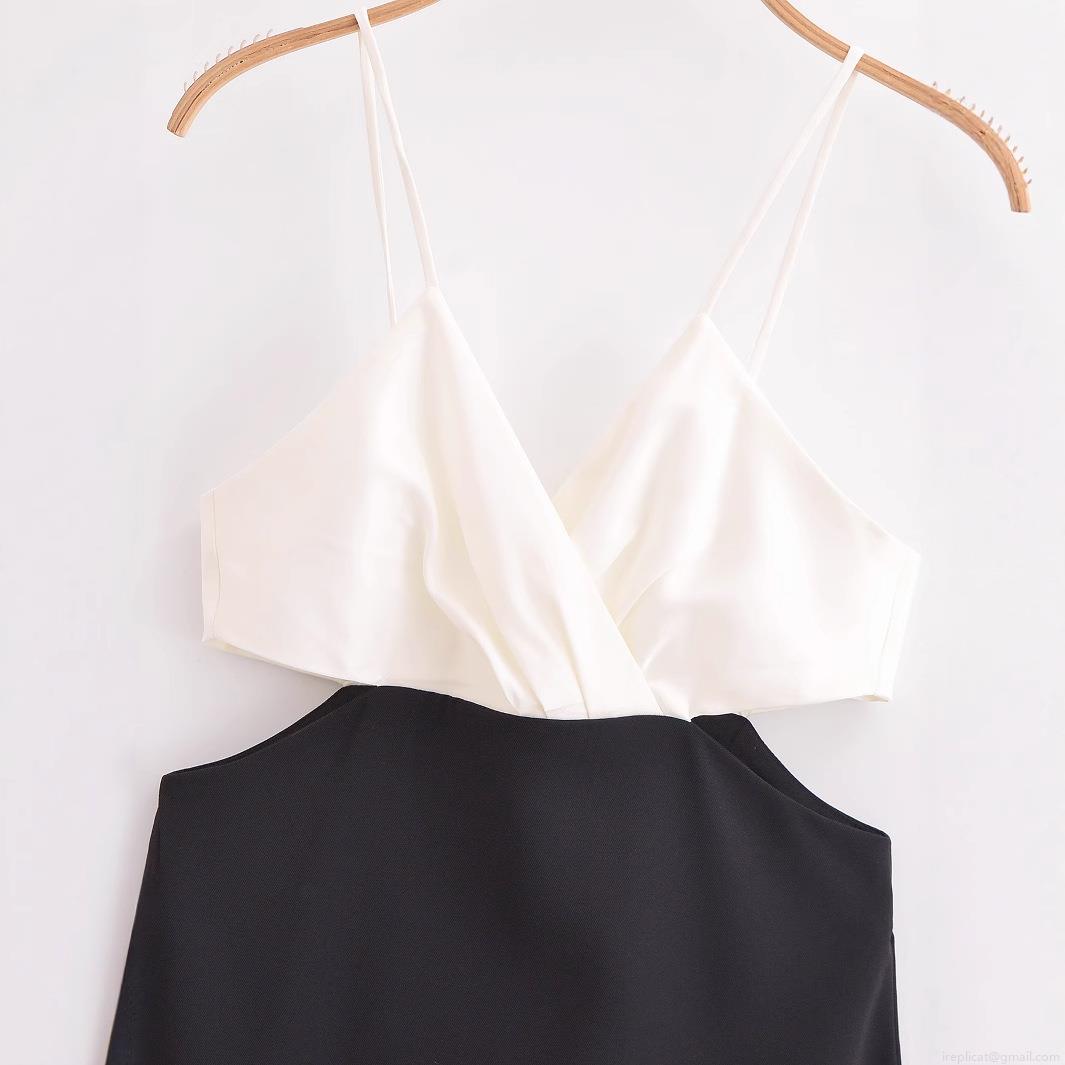 Splice, Color Blocking, Hollow Out, V-neck, Backless, Thin Straps