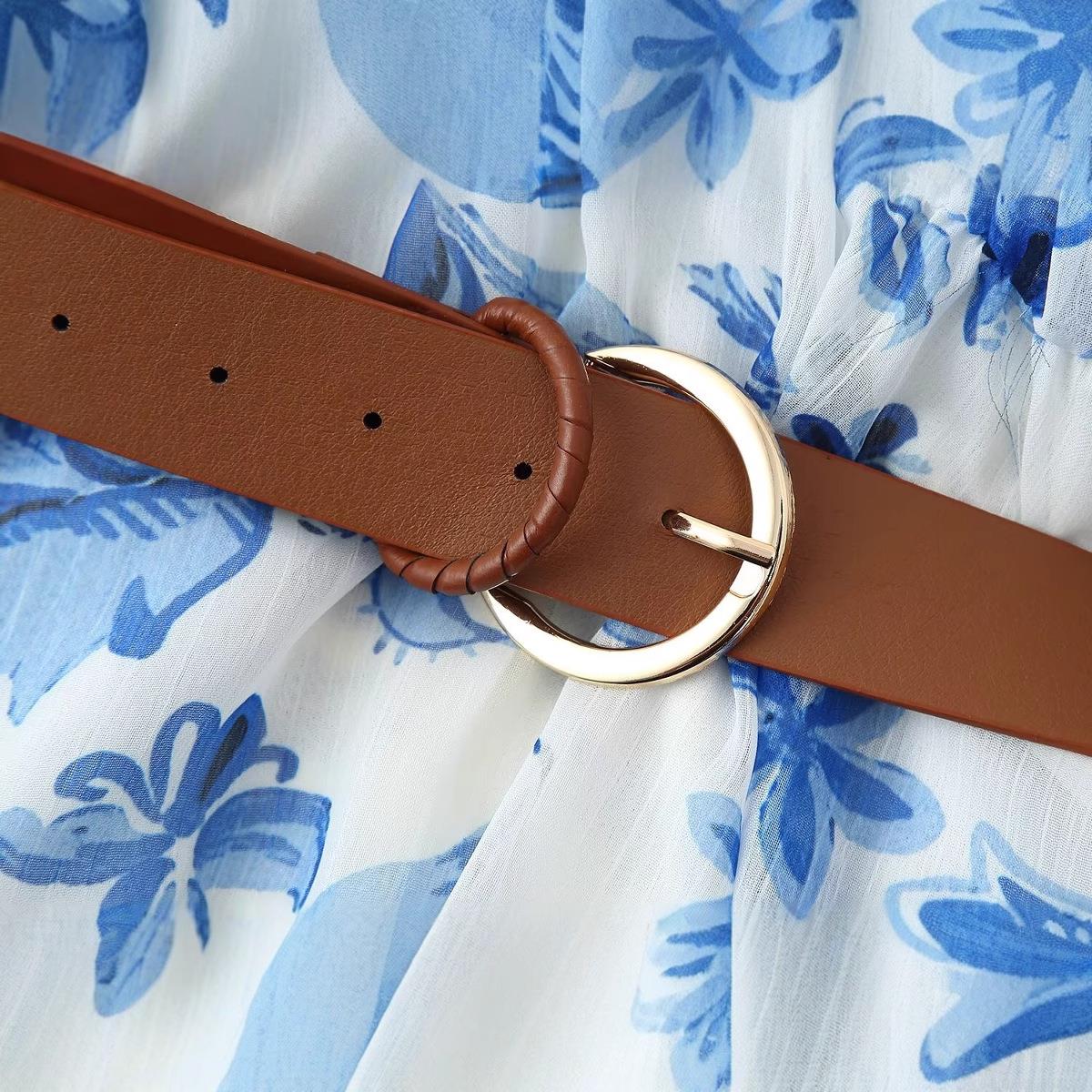 Floral Pattern, Ruffles, Flowers, Printing, With Belt