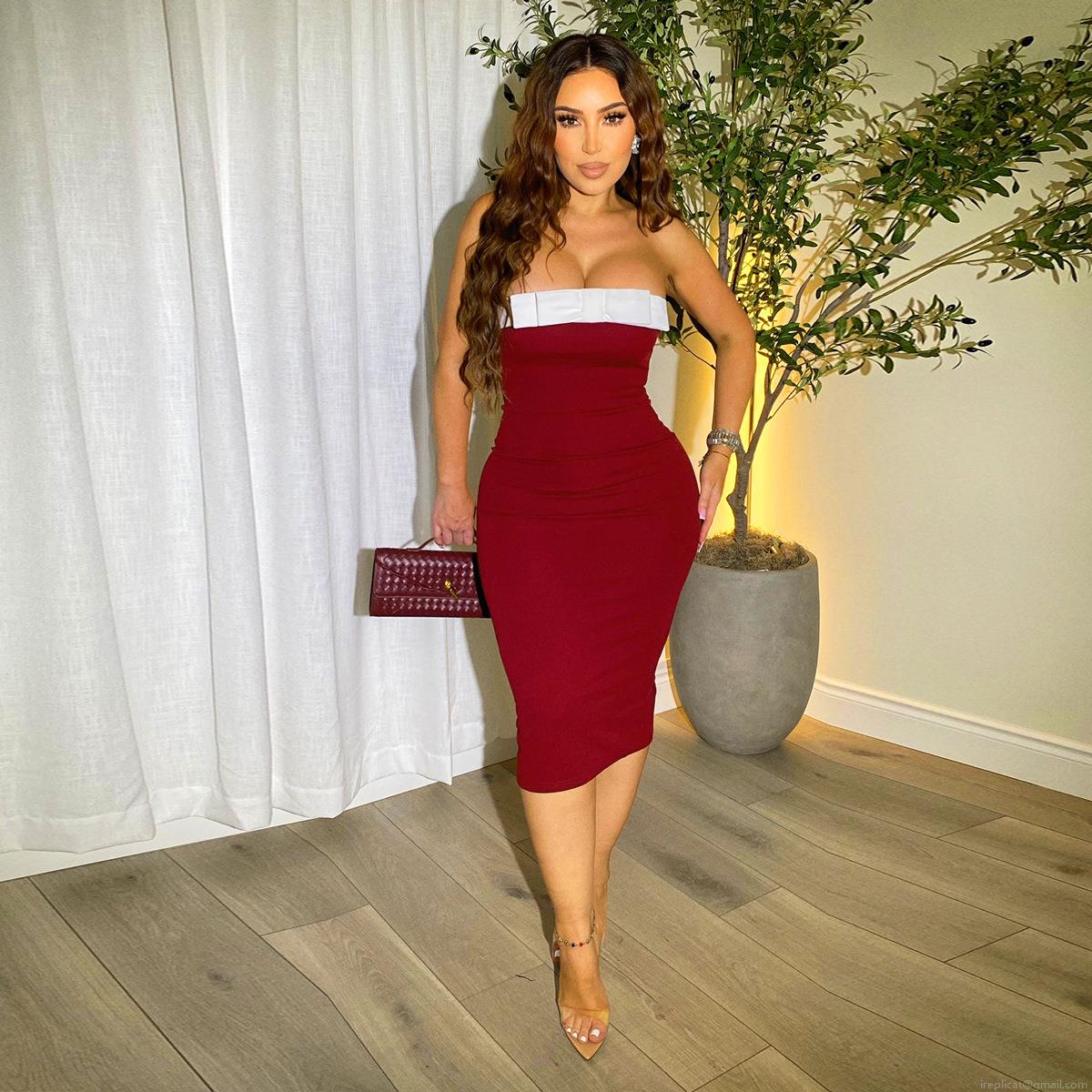 Bow, Color Blocking, Backless, Strapless, Slit