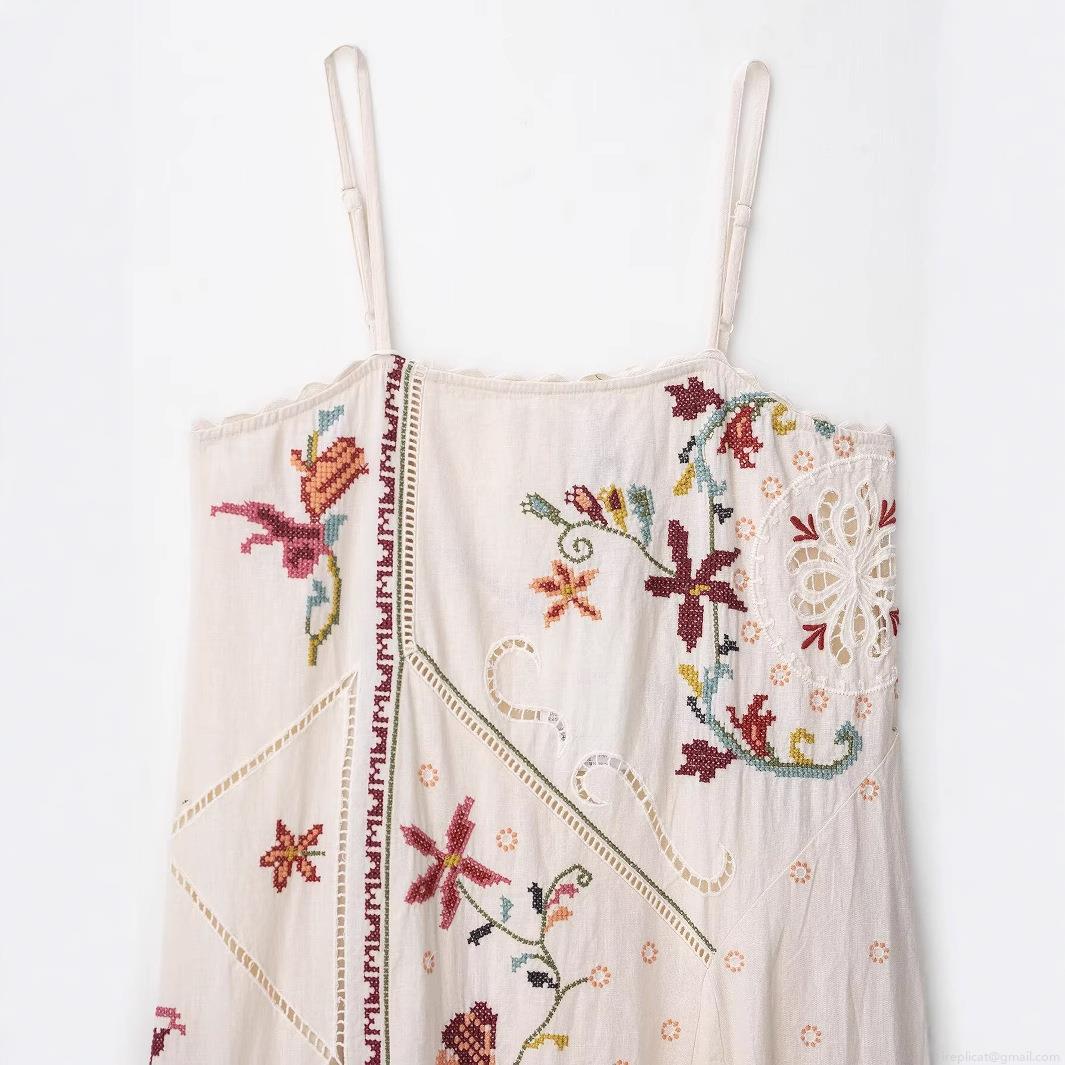 Embroidery, Hollow Out, Geometric Patterns, Flowers, Thin Straps, Irregular Hem