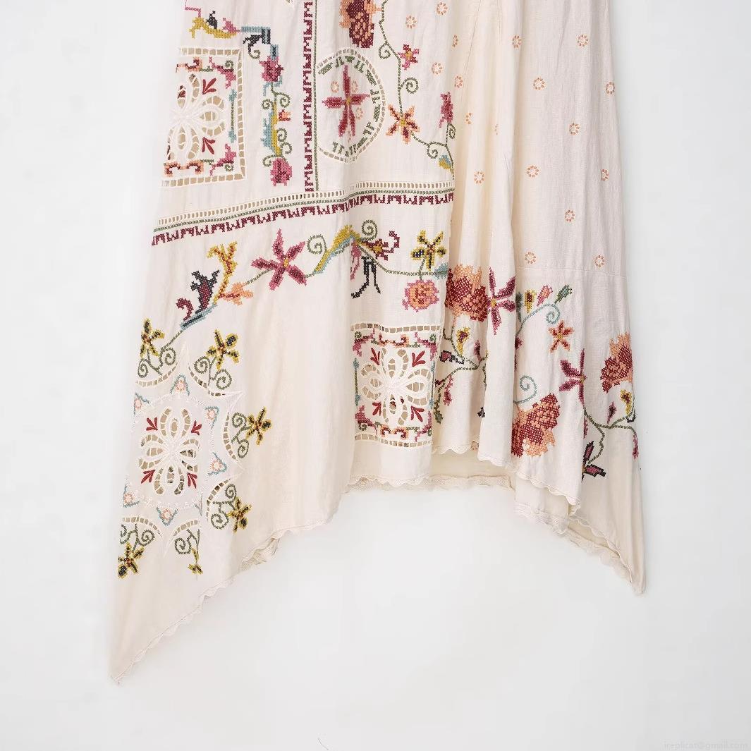 • Women's Bohemian Cotton Linen Blend Sling Dress Irregular Hem Floral Embroidery Midi Dress For Summer Vacation Ethnic Style Sleeveless U-Neck Beach Sundress Beige