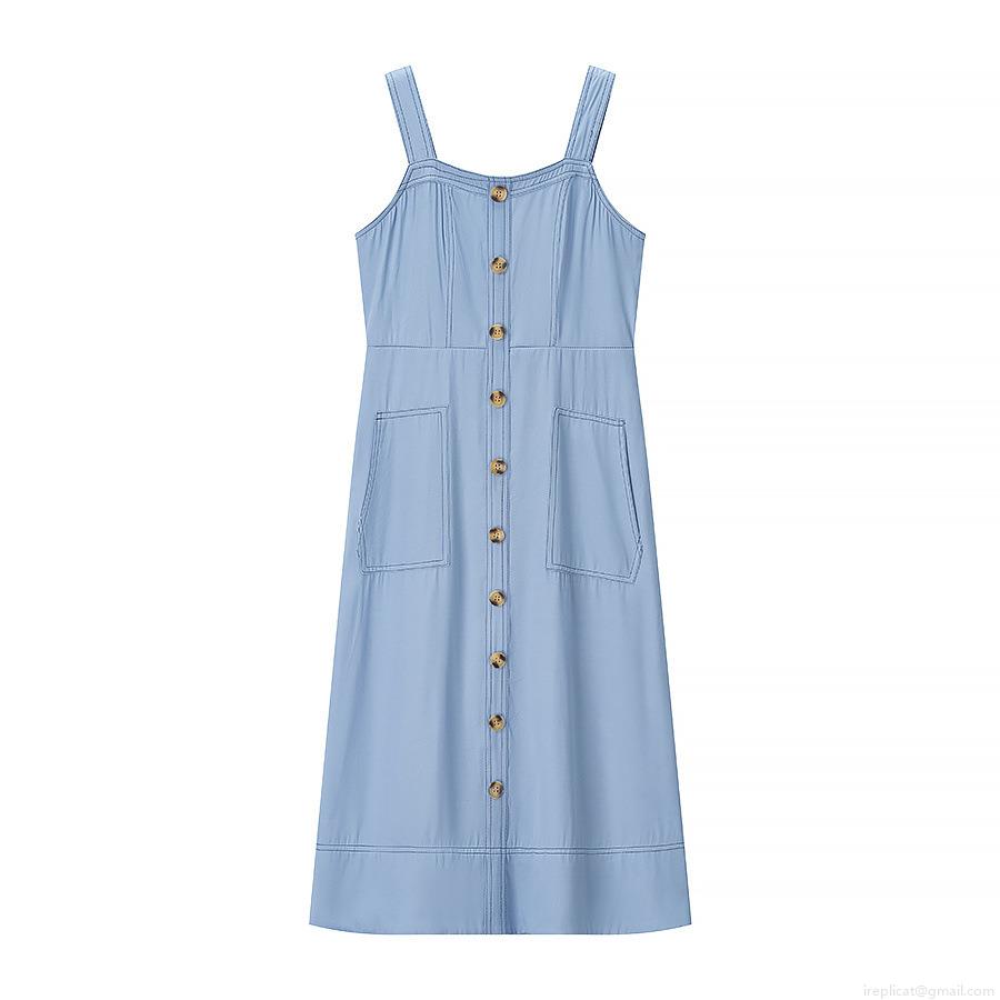 • Women's Casual Cargo Style Denim Look Midi Dress Square Neck Single Breasted Button Down Sleeveless High Waist Long Dress With Pockets 100% Polyester Summer Fashion
