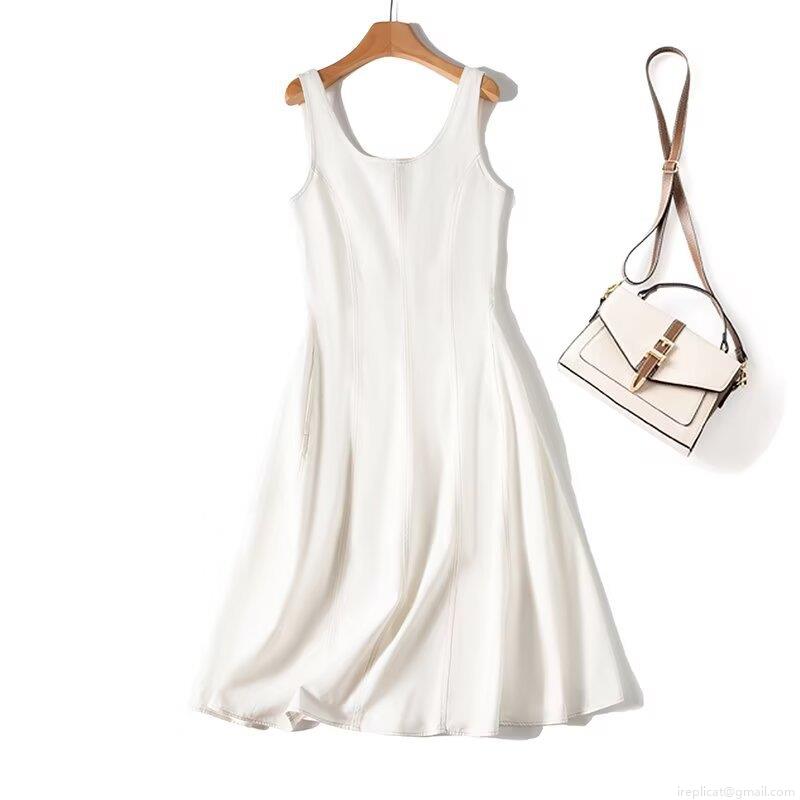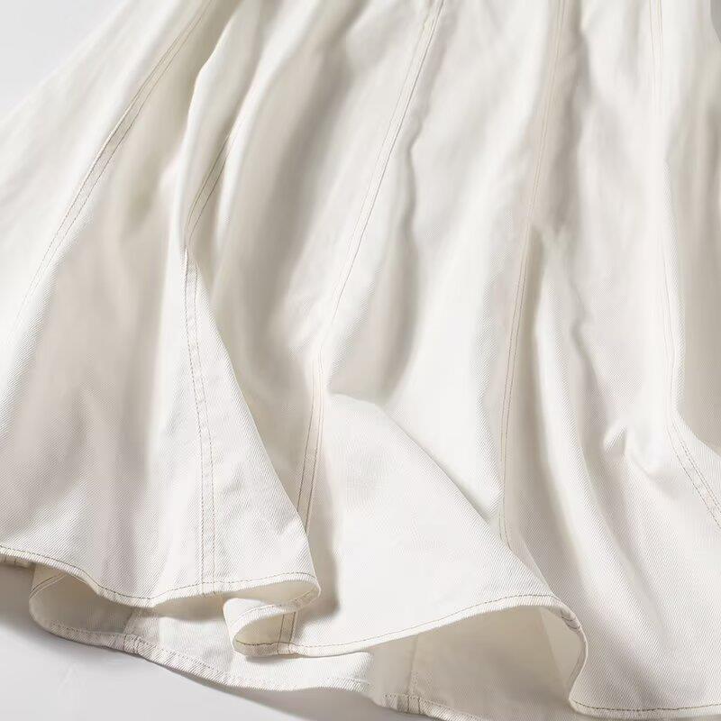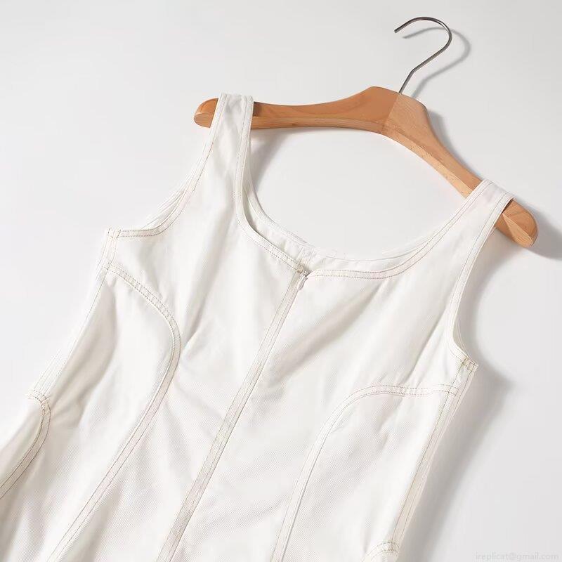 • Women's Casual White 100% Cotton Midi Dress Sleeveless Square Neck Backless A-Line Summer Sundress With Topstitching Detail For Vacation Party Elegant Streetwear