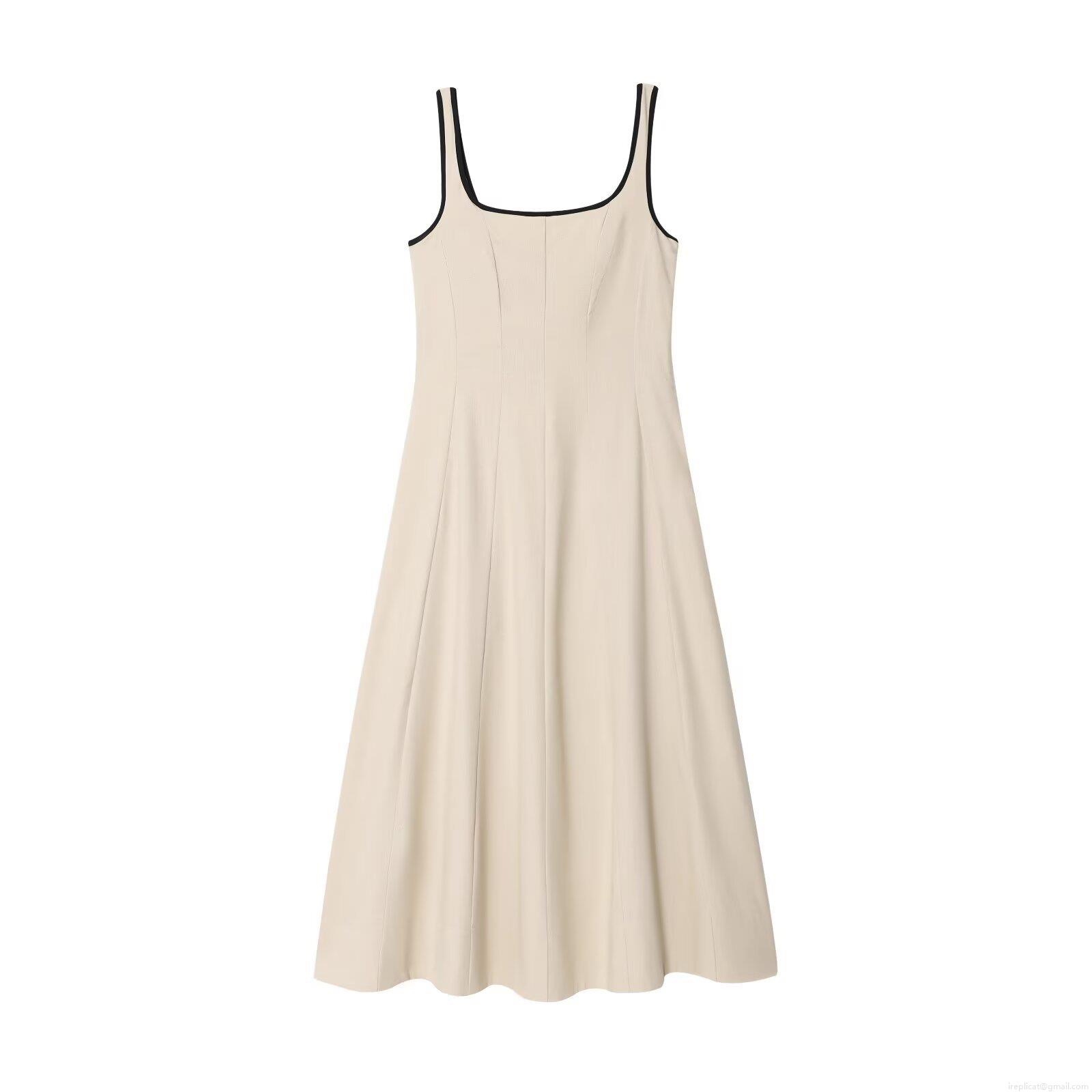 • Women's Contrast Trim Cami Dress Linen Cotton Blend Midi A-Line Dress For Summer Vacation Daily Wear Sleeveless Square Neck Streetwear Style Fashion Dress