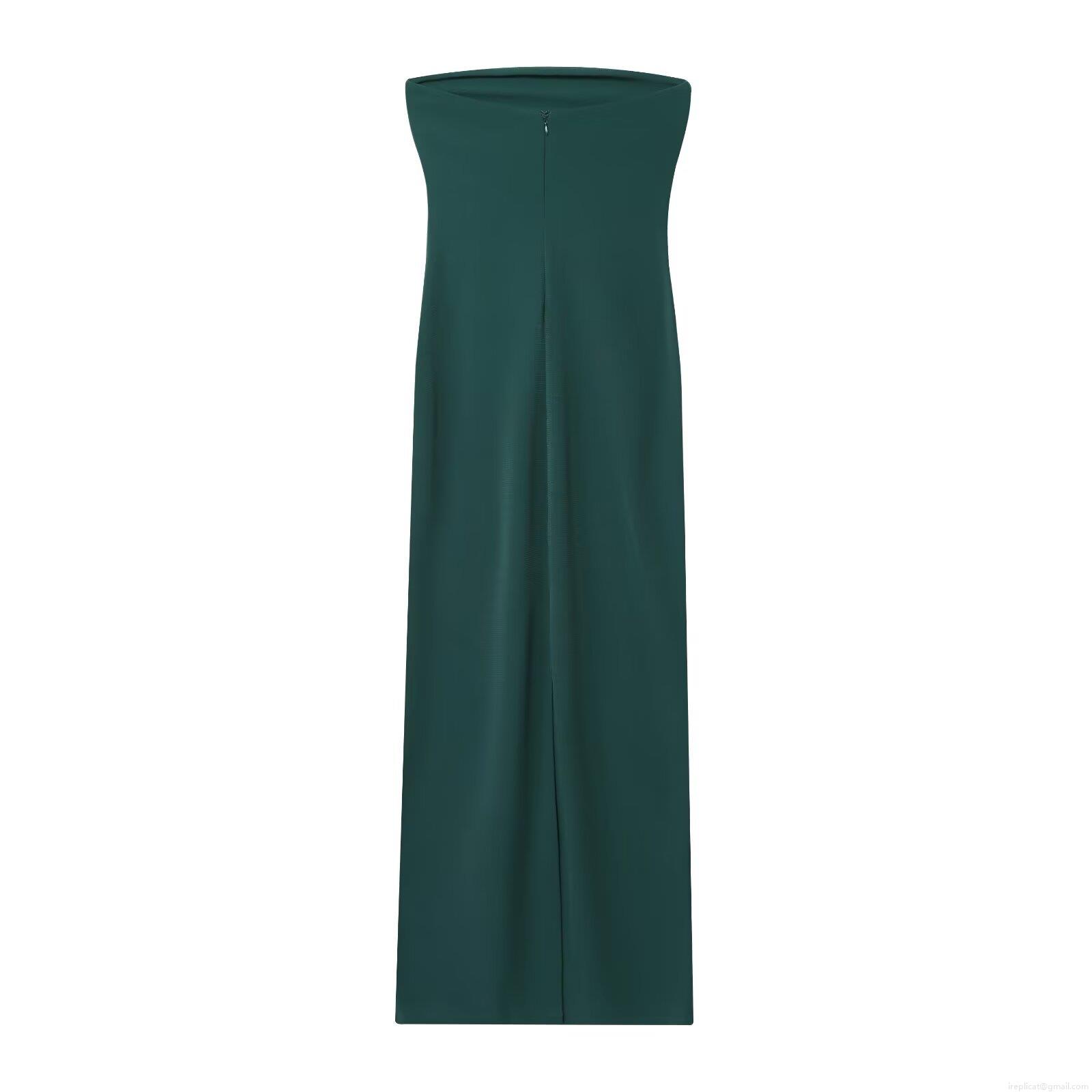 • Women's Dark Green Tube Top Midi Dress Sexy Off Shoulder Bodycon Backless Split Hem Dress For Evening Party Club Night Out Summer Autumn Streetwear