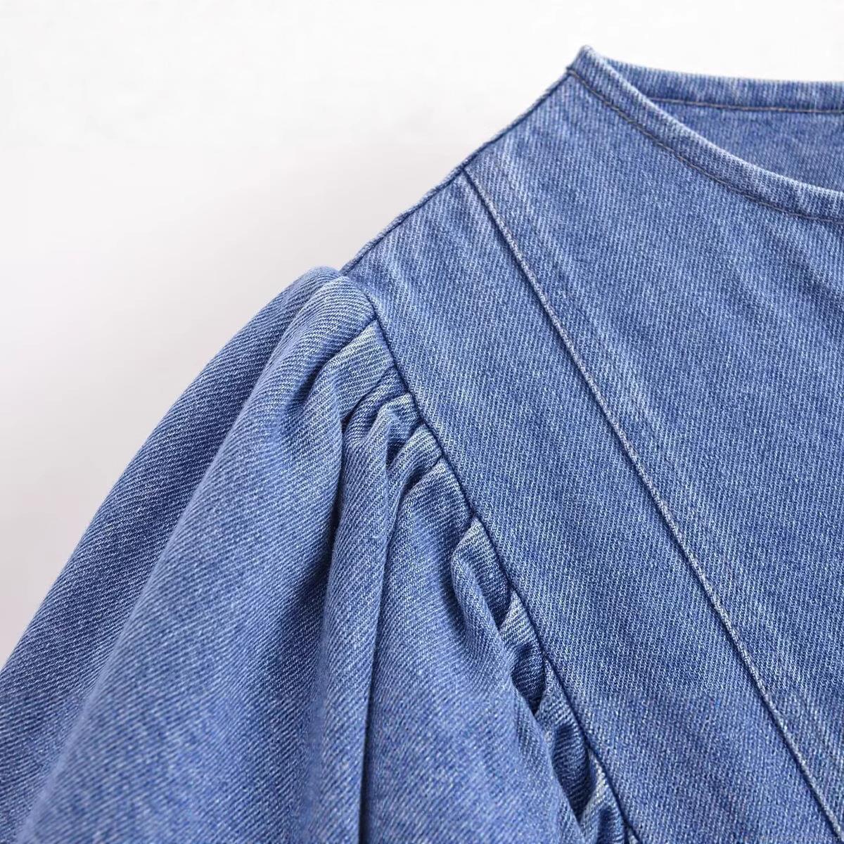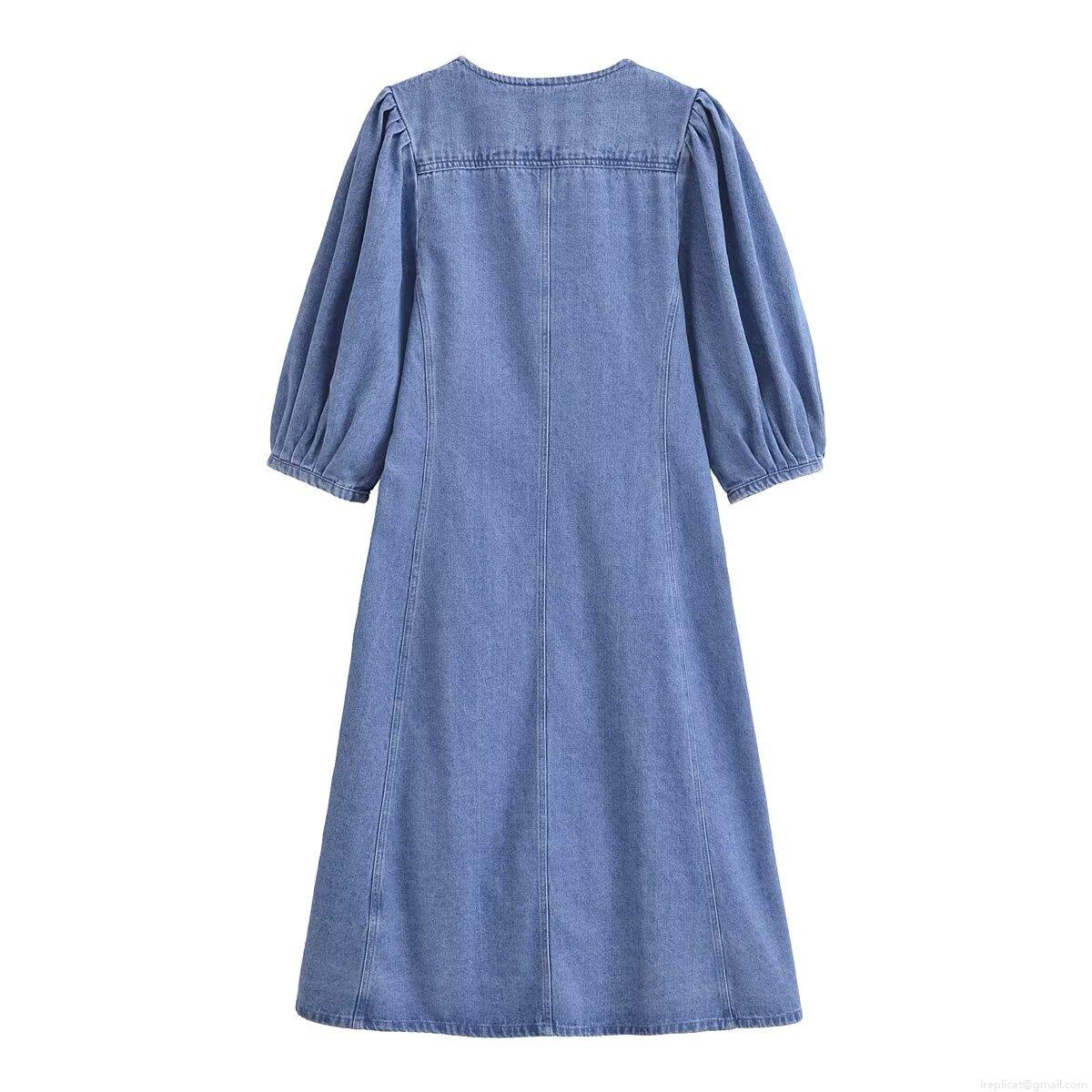 • Women's Denim Midi Dress Round Neck Long Puff Sleeve Single Breasted Retro Washed Cotton Blend A-Line Streetwear Fashion Dress for Women Casual Daily Wear