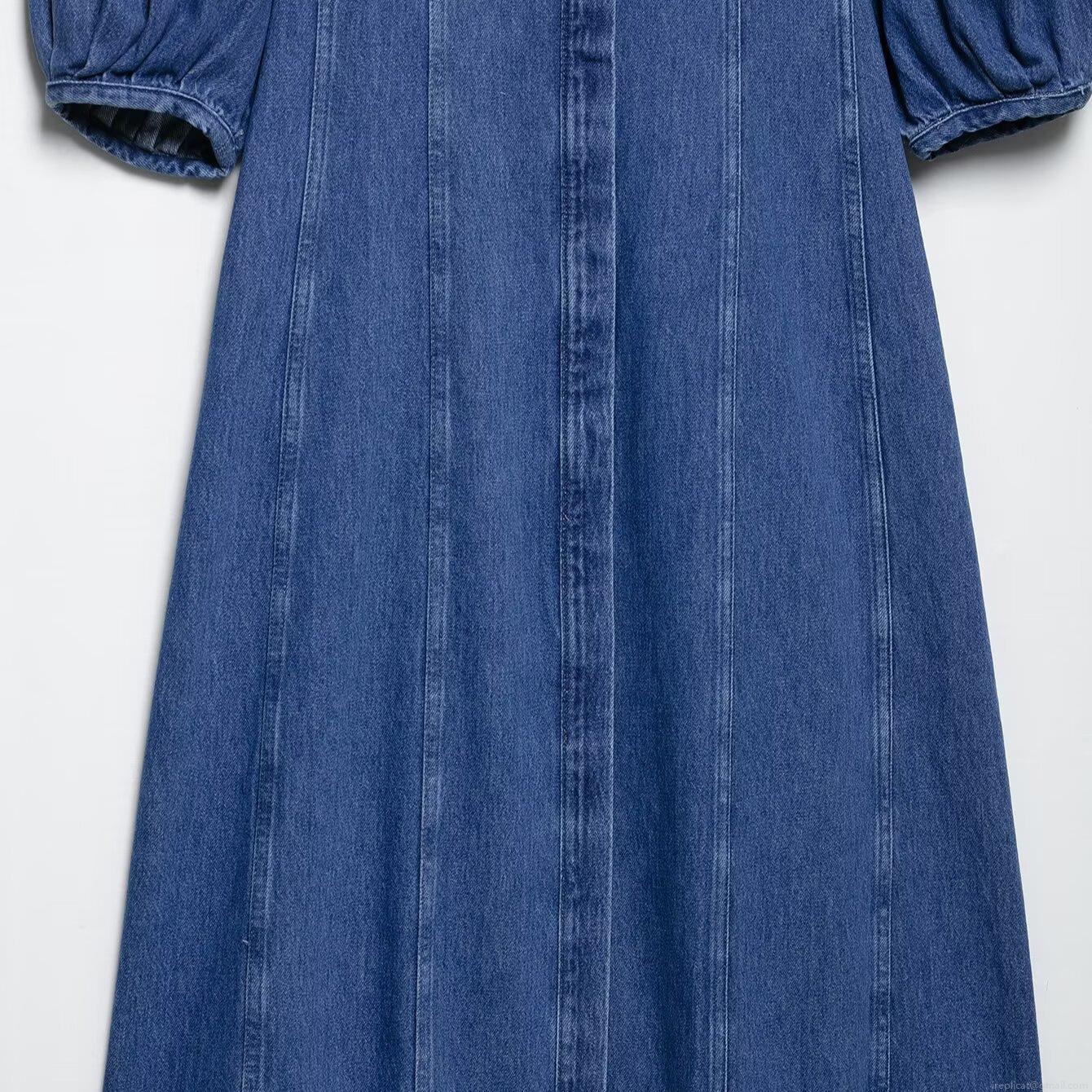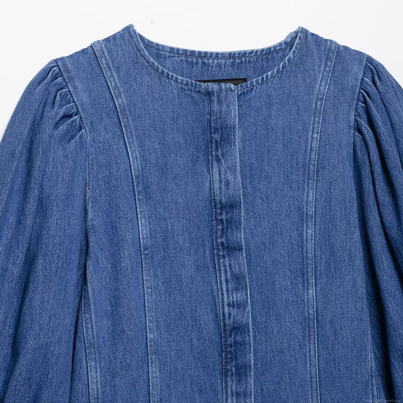 • Women's Denim Midi Dress Round Neck Puff Sleeve A-Line Long Dress Elegant Casual Blue Polyester Denim Solid Color Retro Style Party Outfit For Ladies