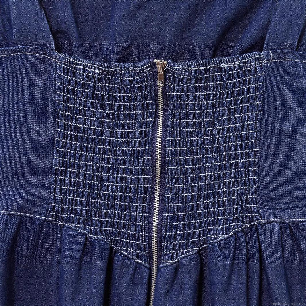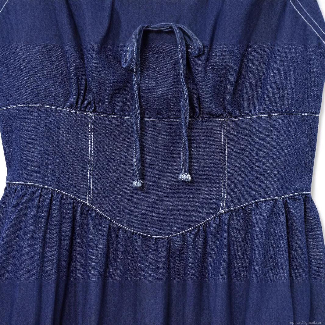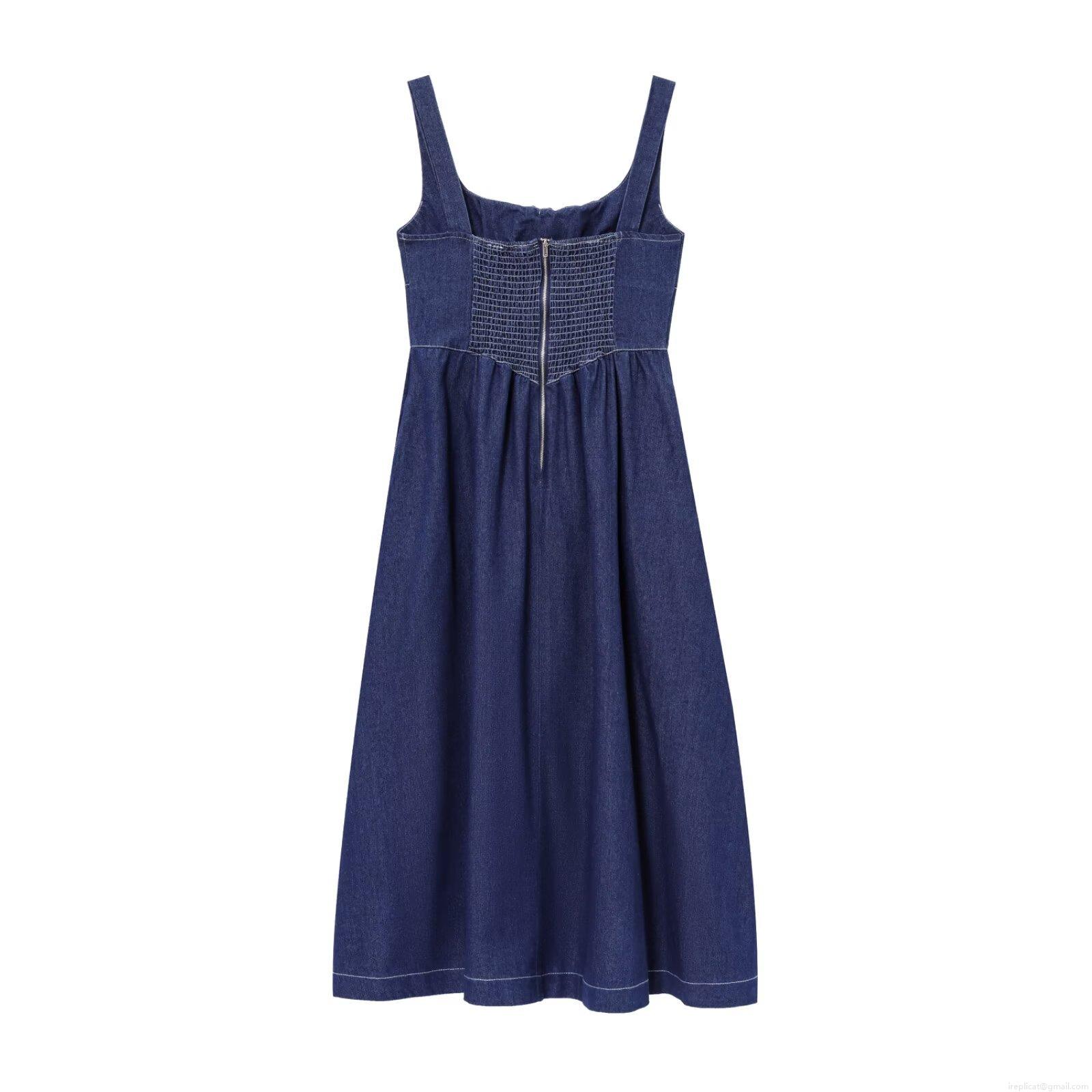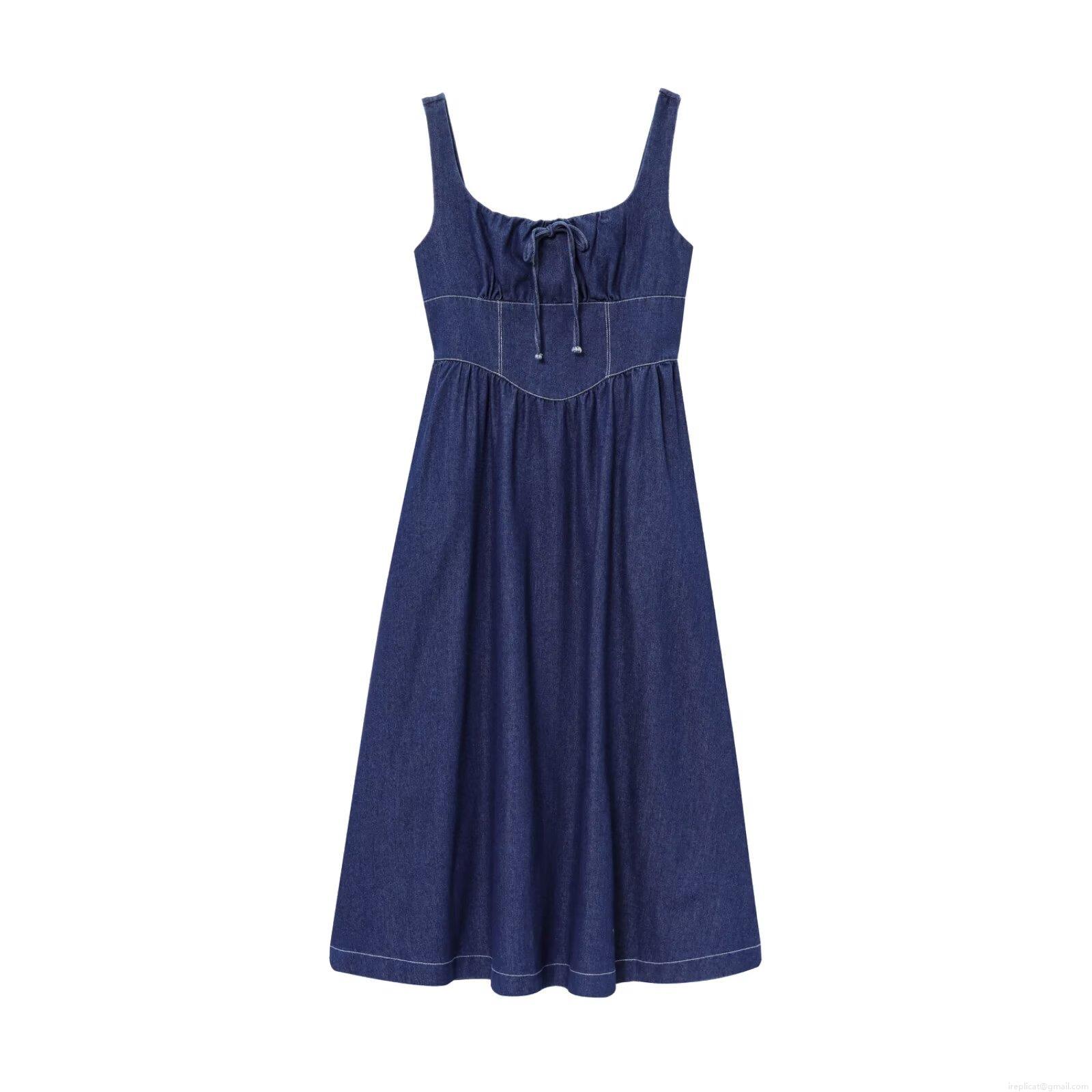 • Women's Denim Midi Dress Spaghetti Strap Square Neck Lace Up Front Smocked Back Contrast Stitching Casual Streetwear Summer Navy Blue Fashion Dress