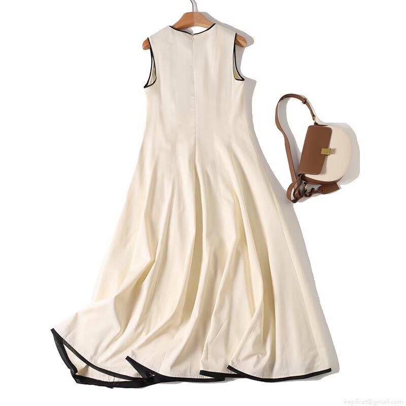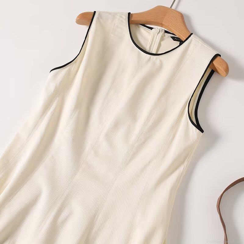 • Women's Elegant 100% Cotton Sleeveless Midi Dress Contrast Binding Square Neck High Waist A-Line Summer Casual Vacation Daily Long Dress