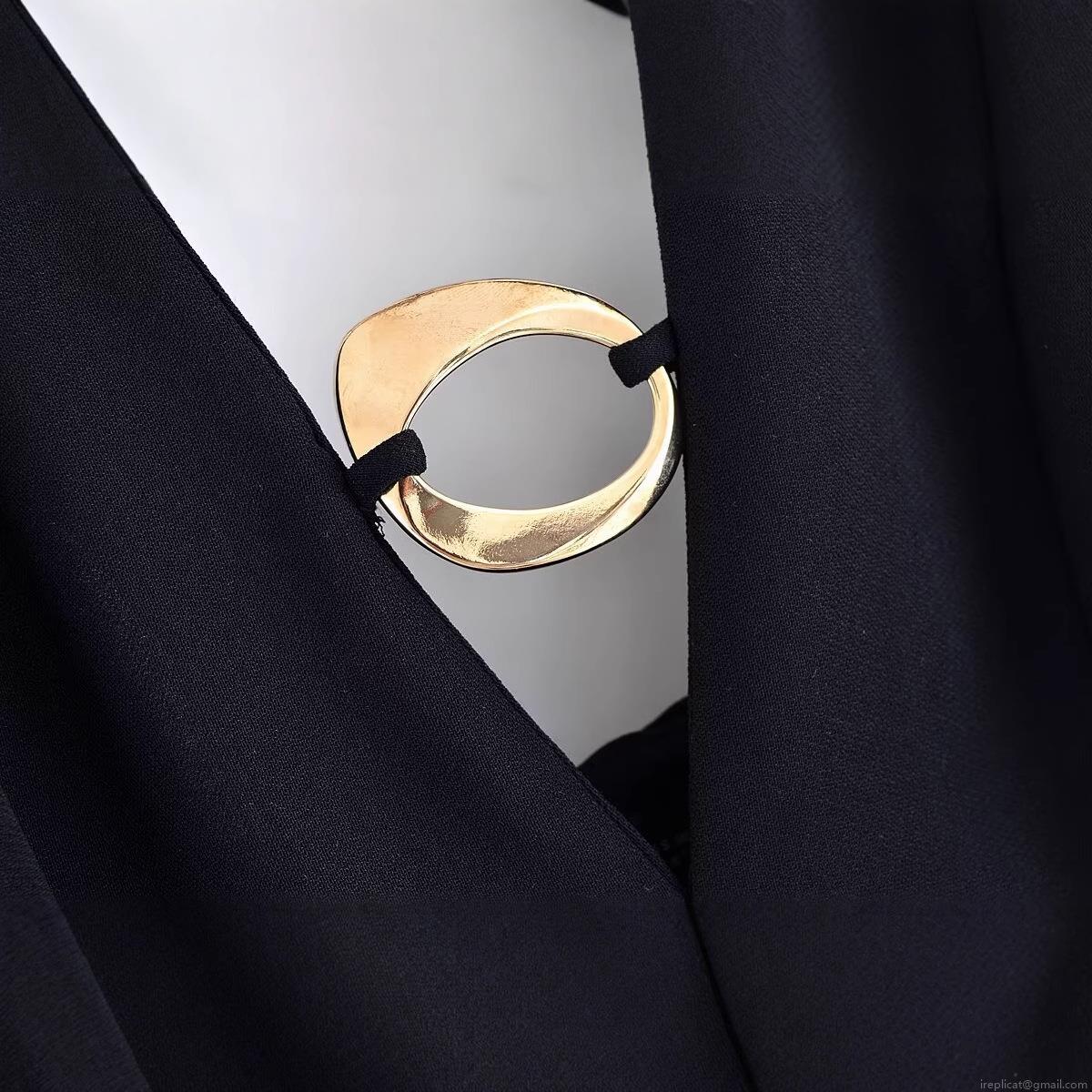 Solid Color, High Fork, Metal Ring Decoration, Neckband Design, Deep V-neck