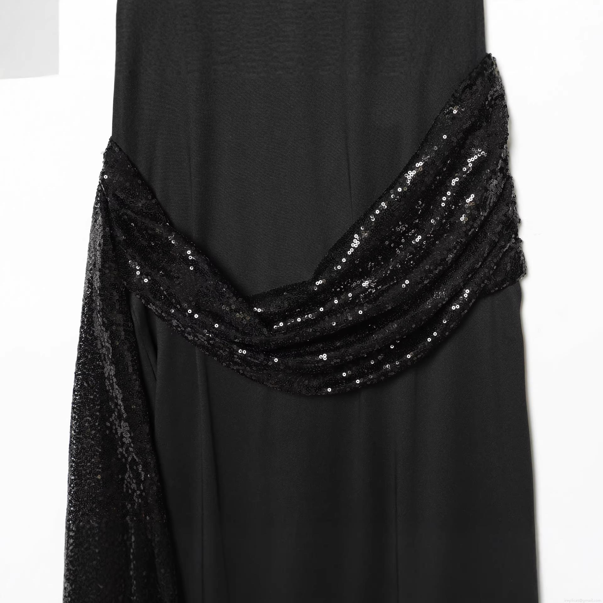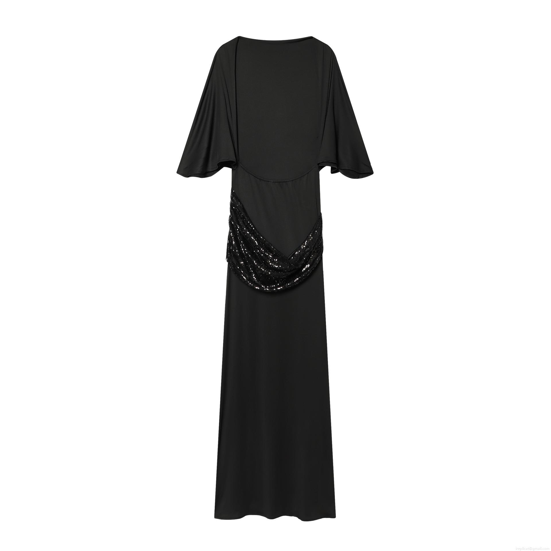 • Women's Elegant Black Sequin Waist Midi Dress Round Neck Batwing Sleeve A-Line Party Evening Street Style Solid Polyester Pullover Dress