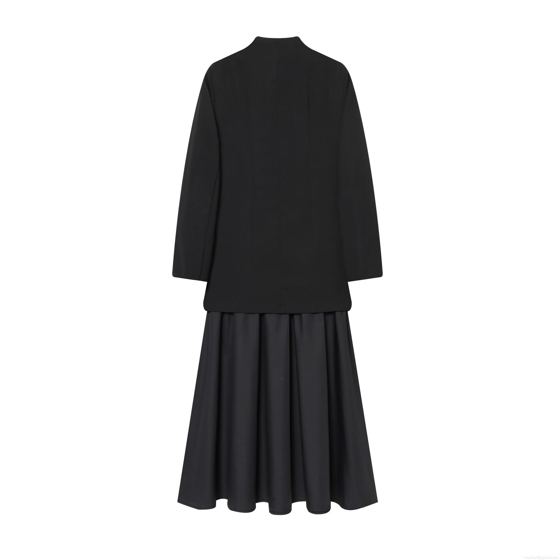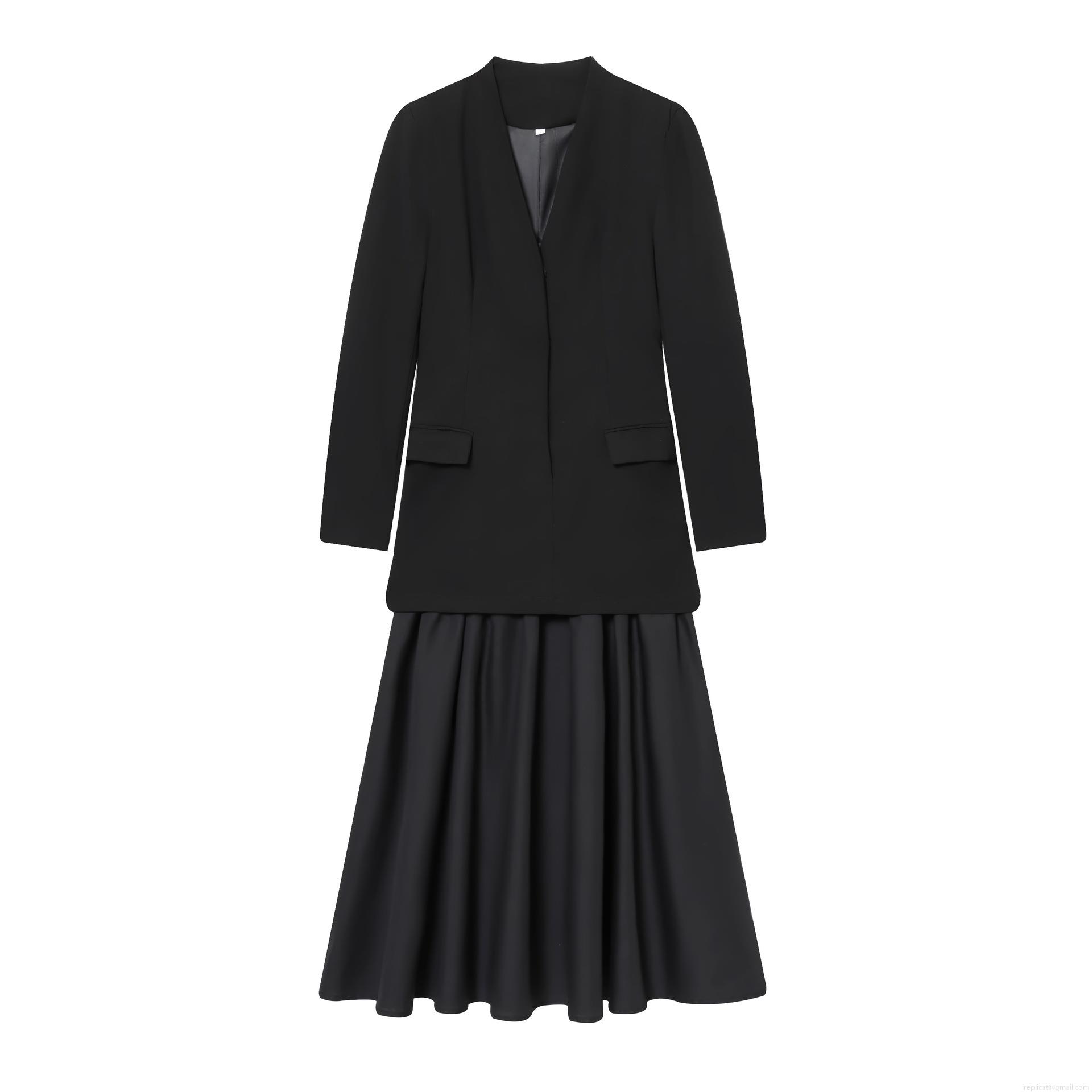 Women's Elegant Blazer Pleated Dress Patchwork Long Sleeve V-Neck Formal Party Maxi Dress Solid Black Slim Fit High Waist Office Skirt Dress