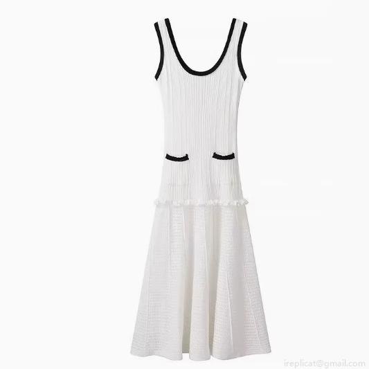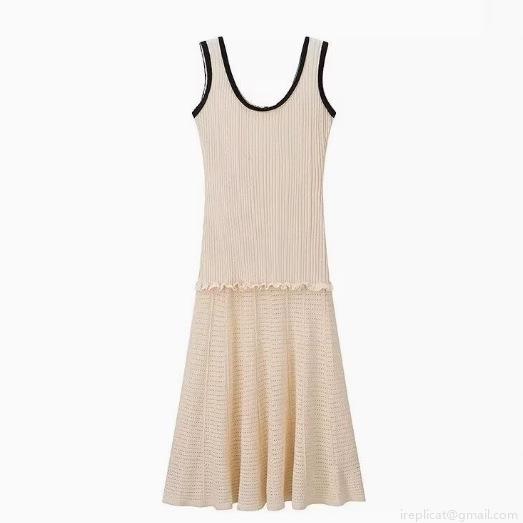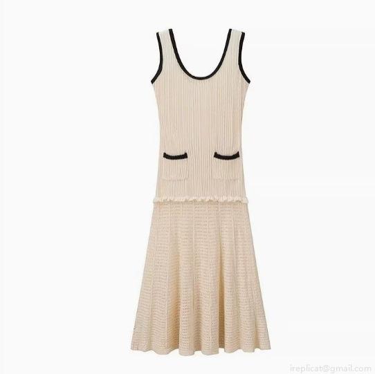 Women's Elegant Contrast Trim Knit Vest Dress Sleeveless U-Neck Midi A-Line Dress Solid Crochet Hem Bodycon Party Summer Beach Clubwear Dress