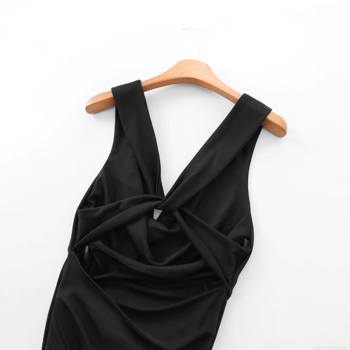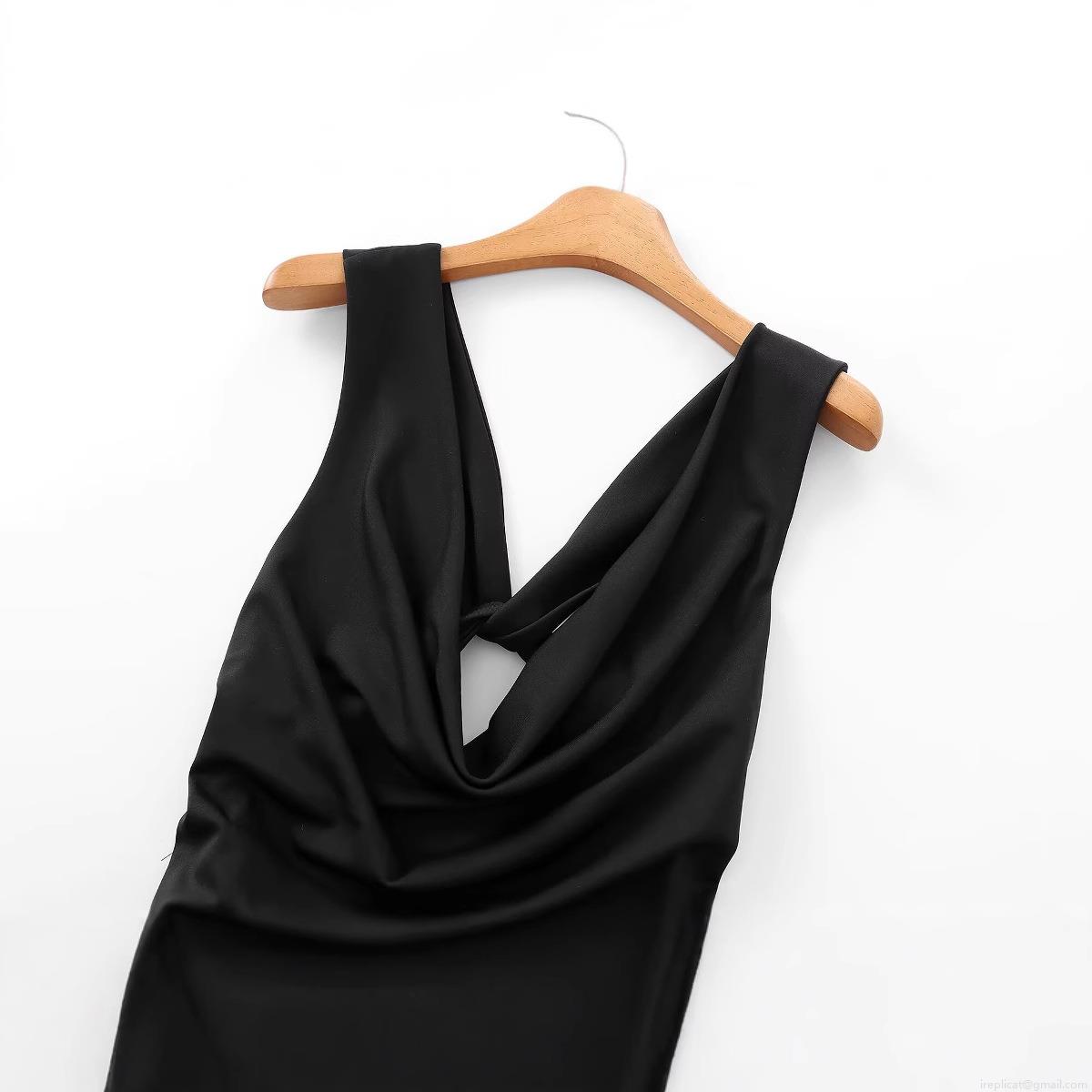 Women's Elegant Cowl Neck Midi Dress Sleeveless Ruched Slim Fit Twist Knot Front Cocktail Party Evening Wedding Guest Dresses