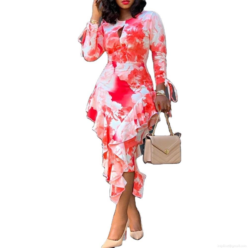 • Women's Elegant Floral Print Long Sleeve Midi Dress Ruffle Hem Bodycon Pencil Dress For Office Commute Party Ladies Polyester Blend Slim Fit Dress