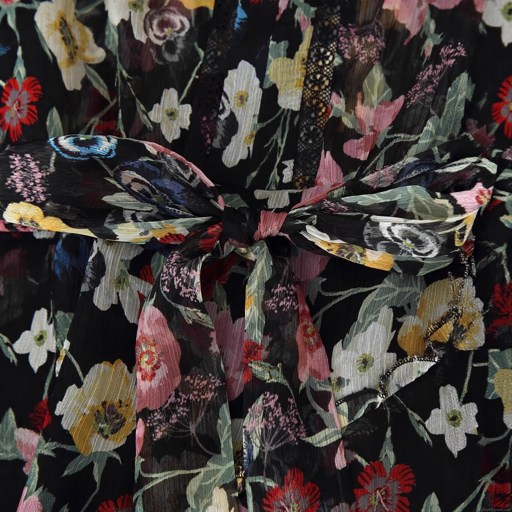 • Women's Elegant Floral Print Midi Dress Long Sleeve Ruffle Neck Chiffon Texture Vacation Style Pullover Dress With Bow Tie Belt Party Clubwear